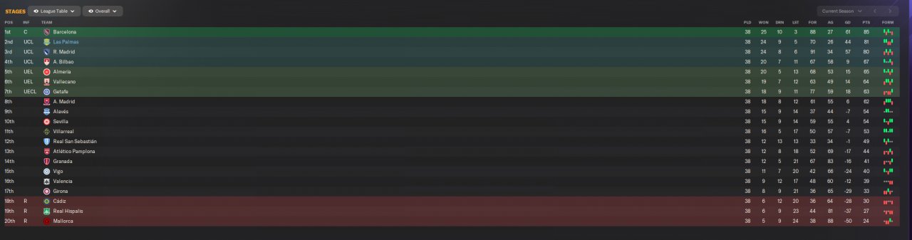 Las Palmas (2nd *predicted 20th* 26 goals conceded)