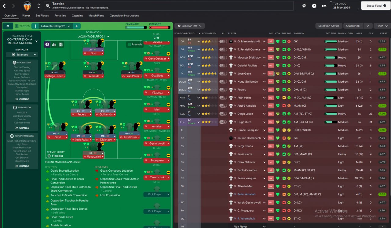 4-2-3-1 inspired in Valencia C.F.