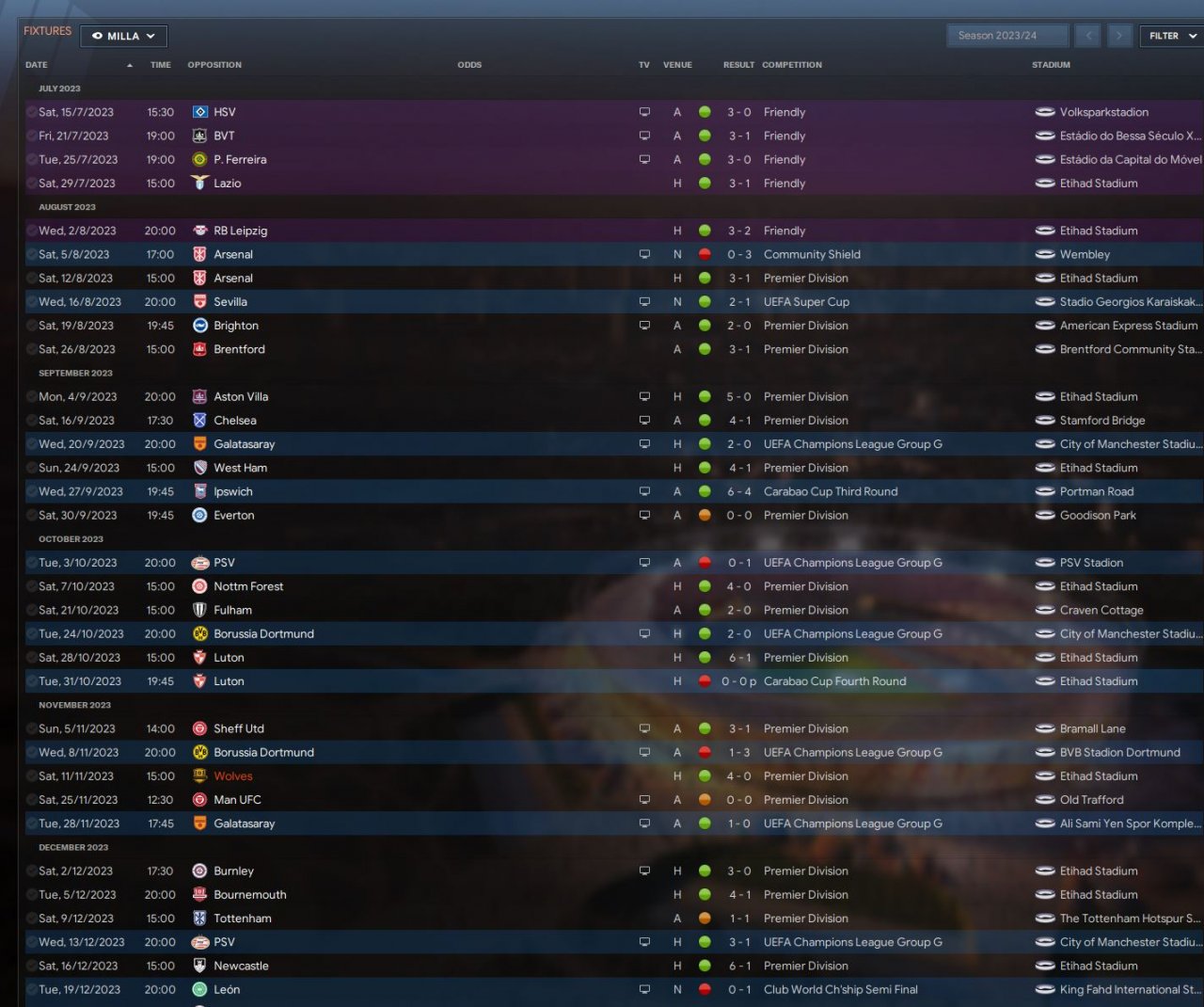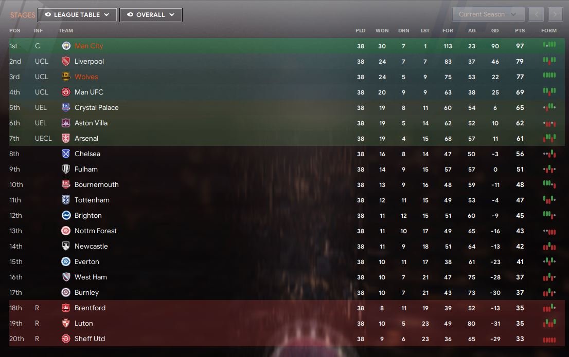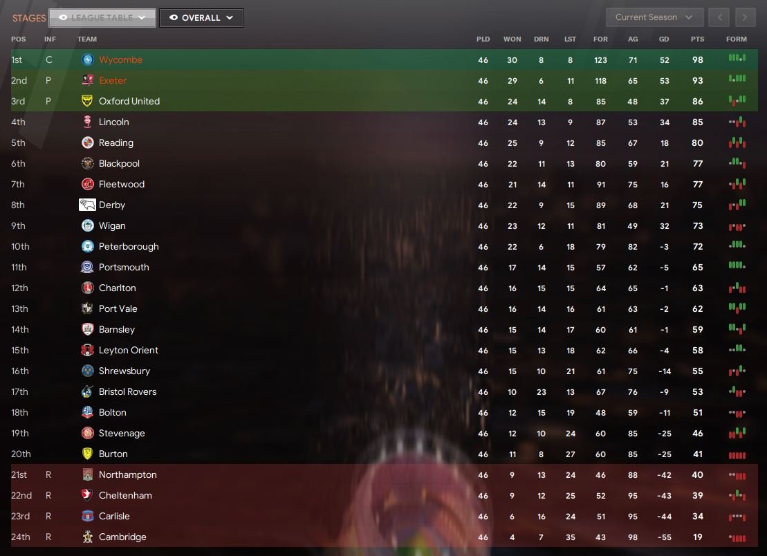 Tried it with the standard 3 Divisions of EPL (Man CIty and Wolves), L1 (Wycombe and Exeter) and VNL (Bromley and Kidderminster).