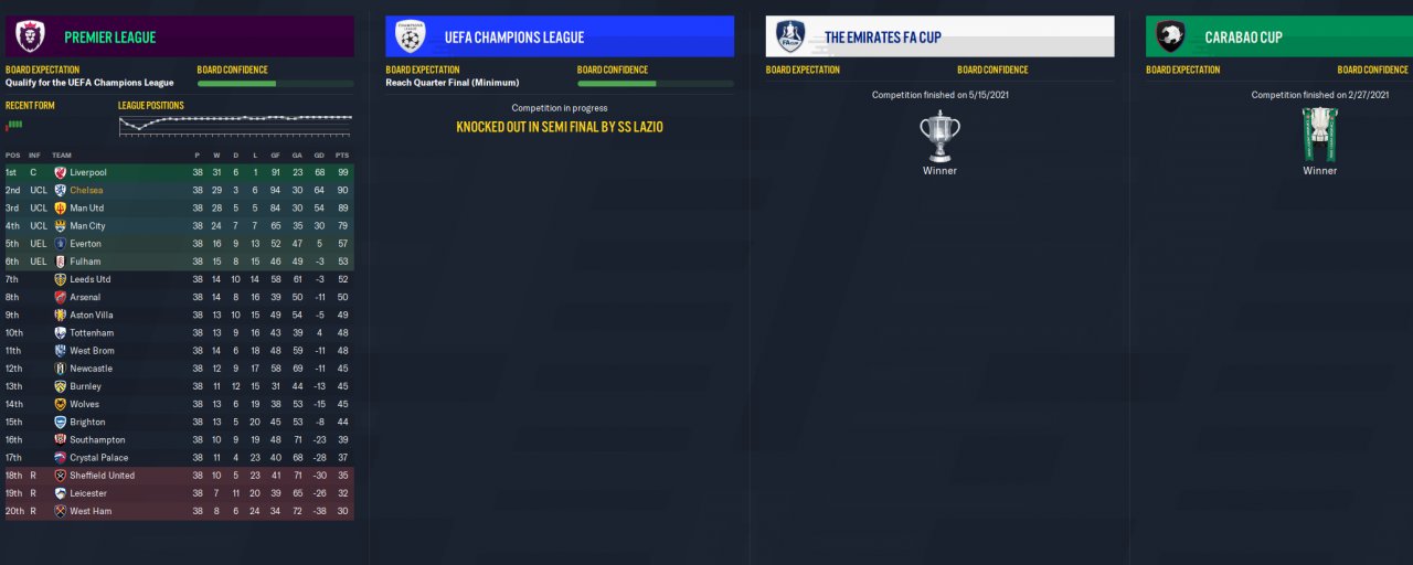 2nd in Premier League & Cups with Chelsea