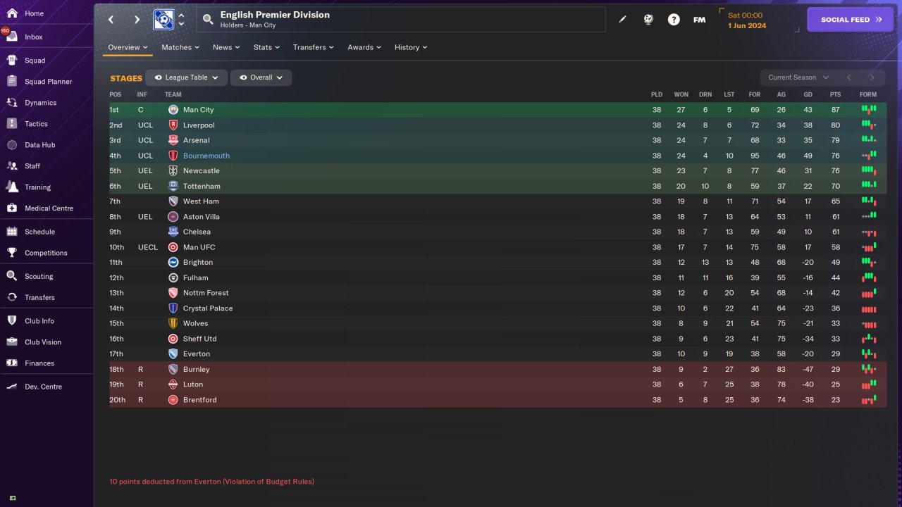 Trying to create a classic english 4-4-2 with this shape. Good result with Bournemouth on holiday so lets see how well it can do here.