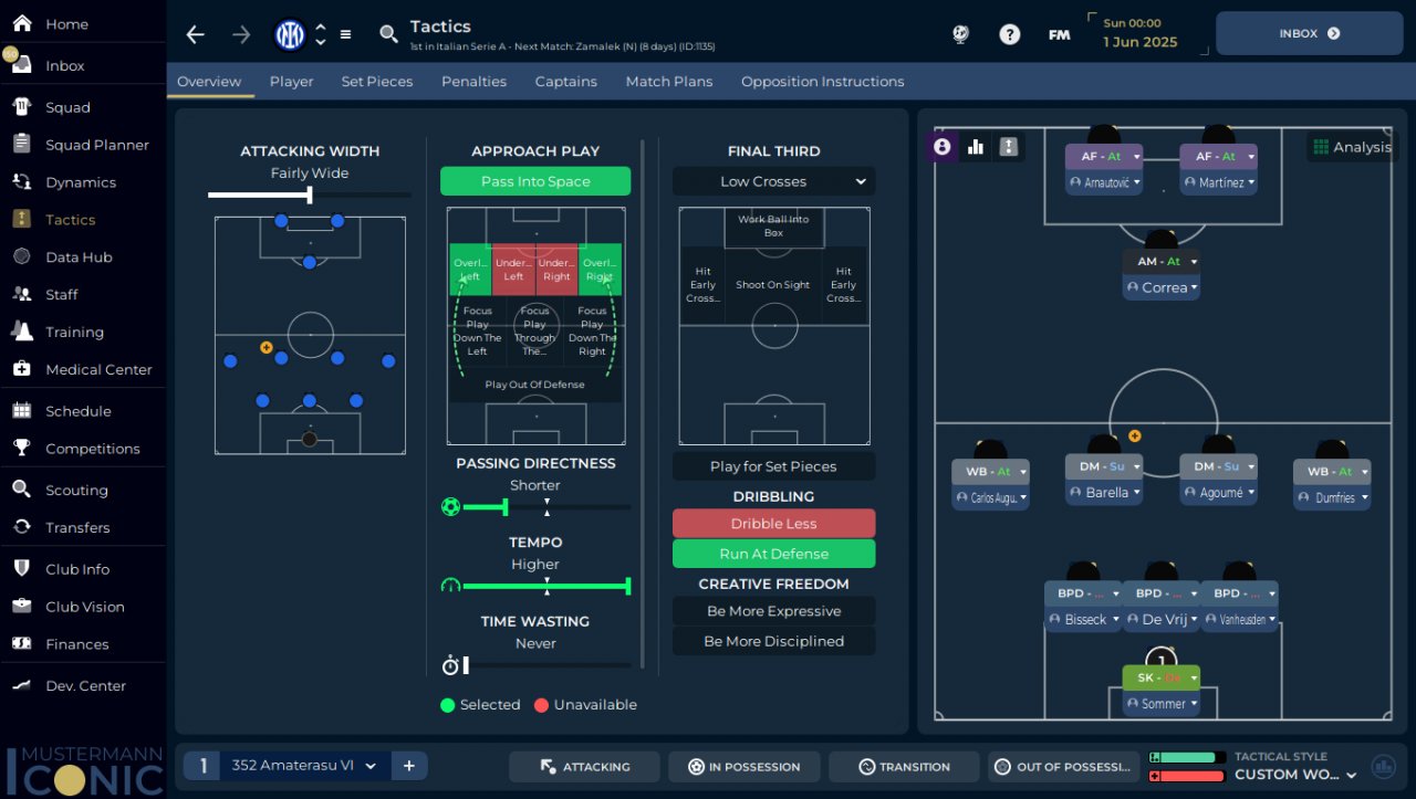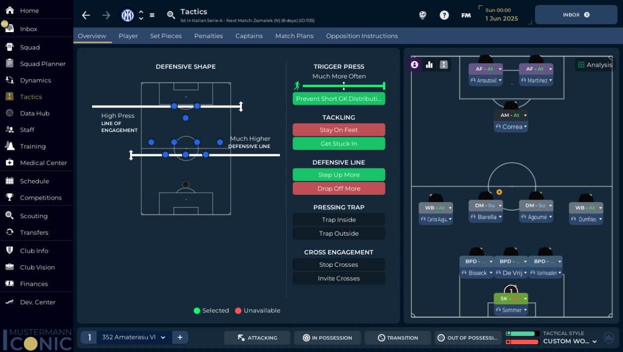 Based alot on Stuaret who has tested this shape alot in this version, just tried to merge to make my 3-5-2 and to try to use 2DM which are meta in FM since years and the offensive part looks cleaner