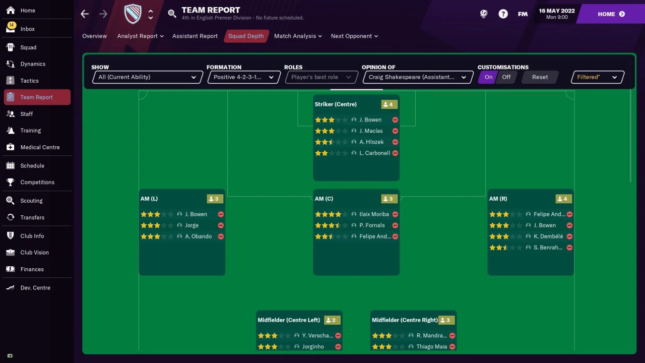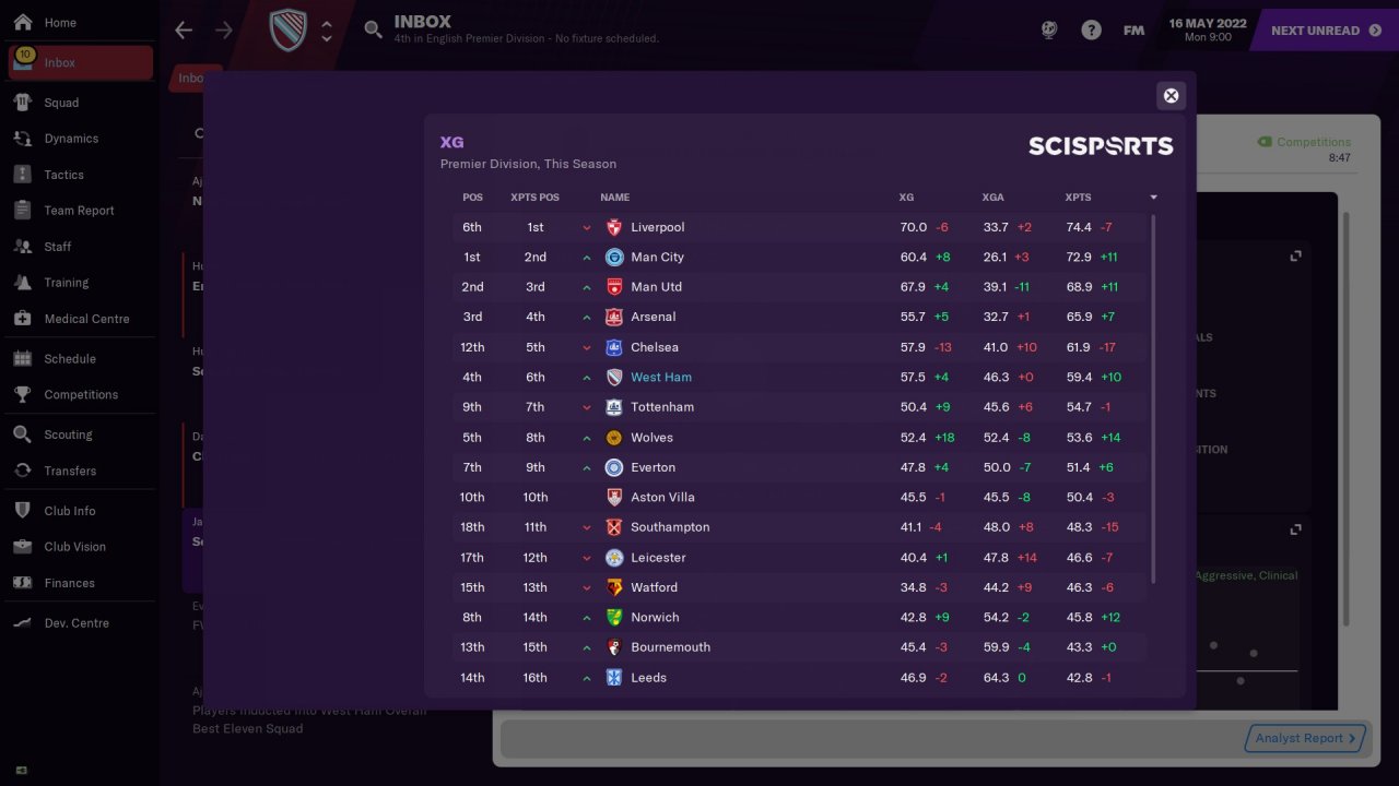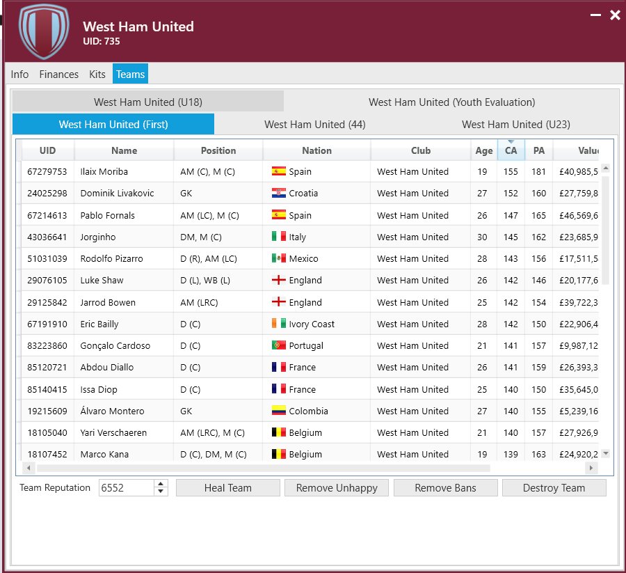 I was able to get west ham to 4th in the prem with a weak squad, here's the CA and PA of players at the end of the season. xG indicates a finish at 6th so we have slightly overperformed xG.