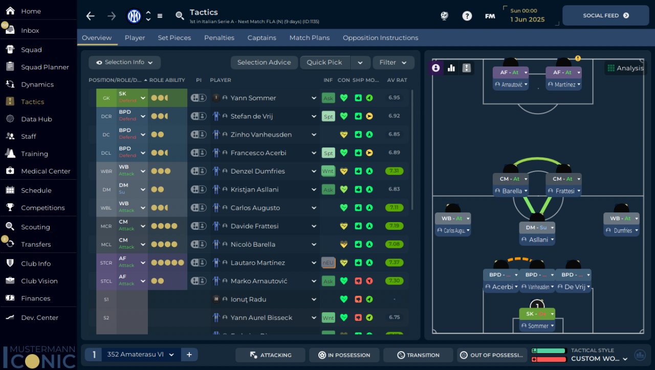 This is the best i mean its 54 after 2k matches so it is the most stable, i am testing some 3-4-2-1 to see i think it is even better but will see, the 4-2-3-1 is very strong in this meta ME better than in every version i just don't like inside forwards neither in real life nor in FM even though it is meta and the best tactic this year and generally 4-2-3-1 is a very strong pressing shape allows very strong press.