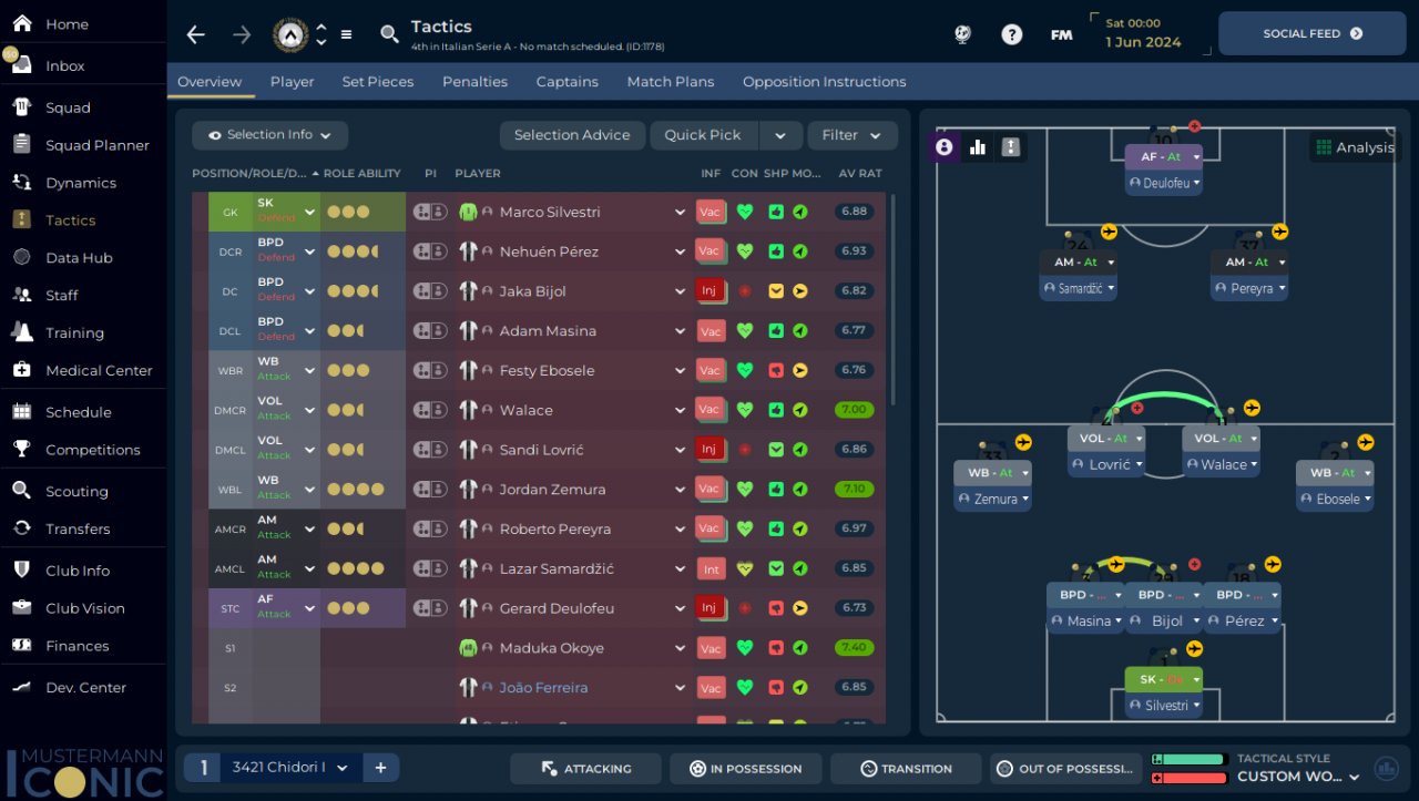First time trying this shape and tested with Udinese 4th, combined stuff from my best 352 here and also from Stuaret and Filler which had success with this shape
