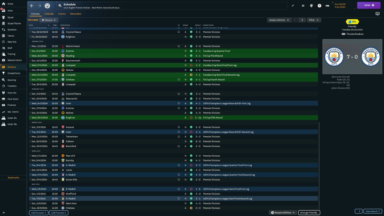 Ran a holiday with man city also, but the players played in the wrong positions.