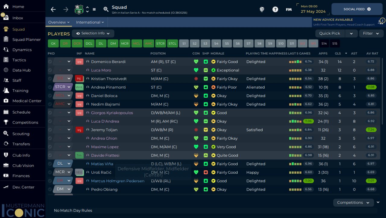 Removed overlaps, added few PI in CM and DM from support to defend