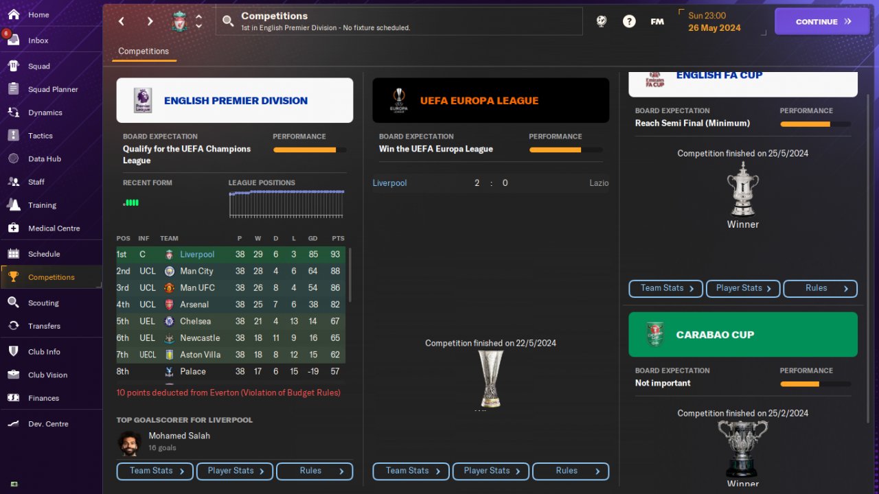 Hi everyone, I want to share with you this fast paced attacking tactic that won me the quadruple with Liverpool in the first season. I had both the best attack and the best defence of the league (113 goals scored, 28 goals conceded).