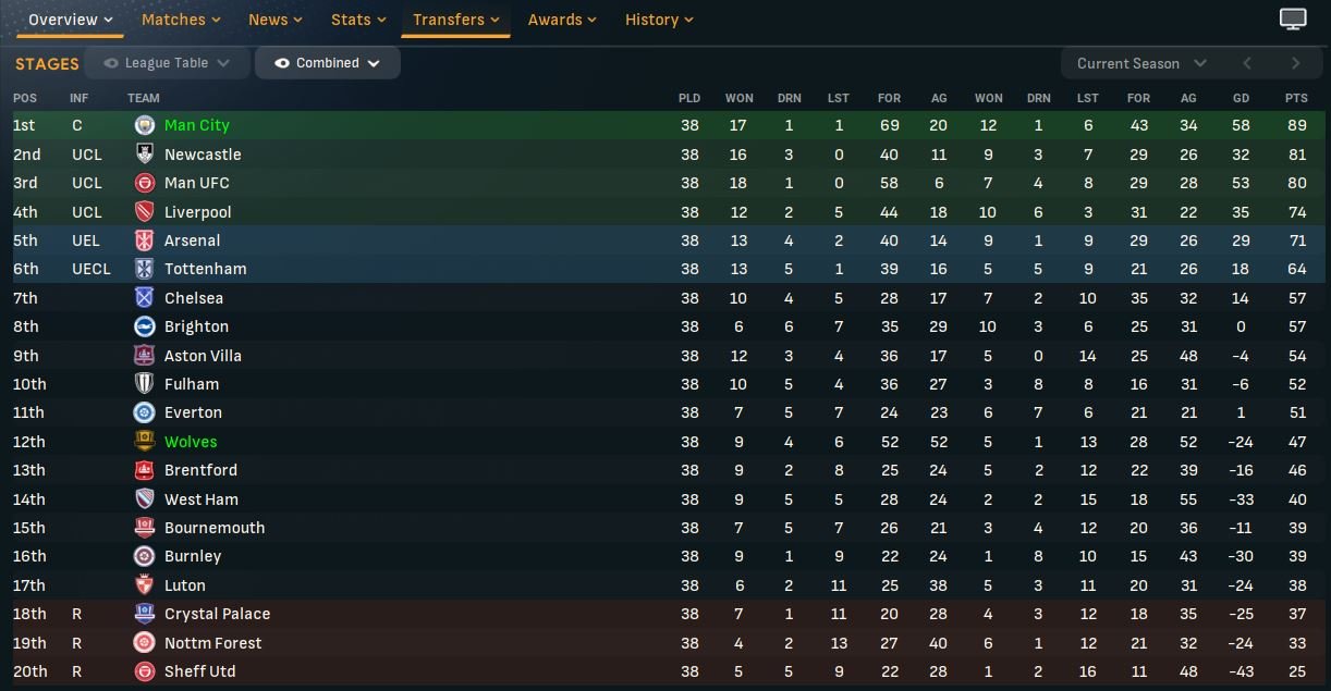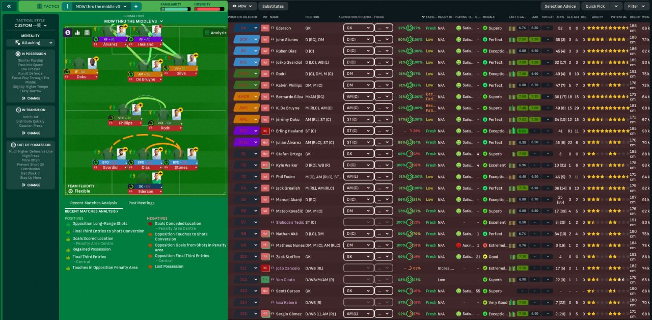 Given the worst tactic I could come up with had all the players on the outside, I thought I would try all players on the inside, as much as I could. After several attempts I got to one that seems to work. I would probably drop the mentality back to Balanced for away games though or change the Vol Su to DM De as it was a bit weaker away from home.