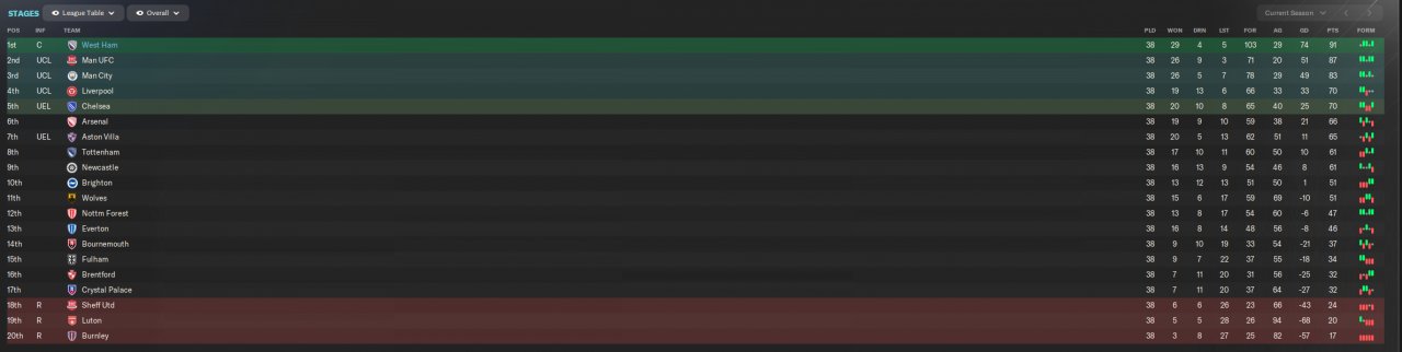 1st with West Ham