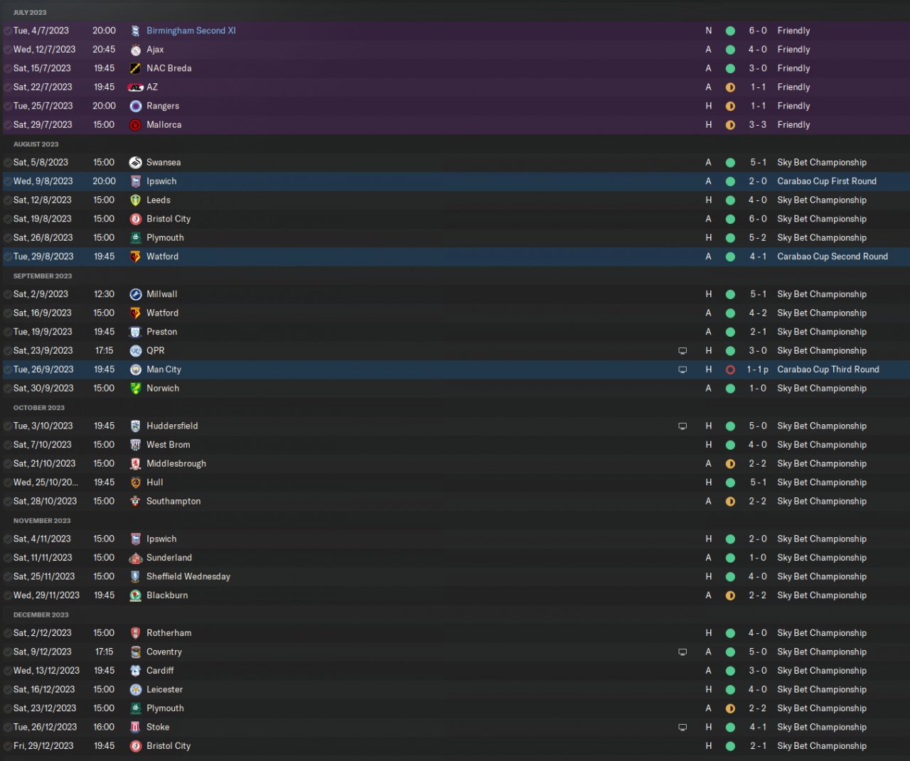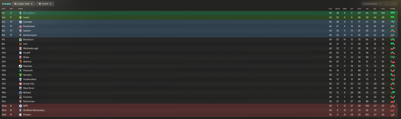 1st with Birmingham