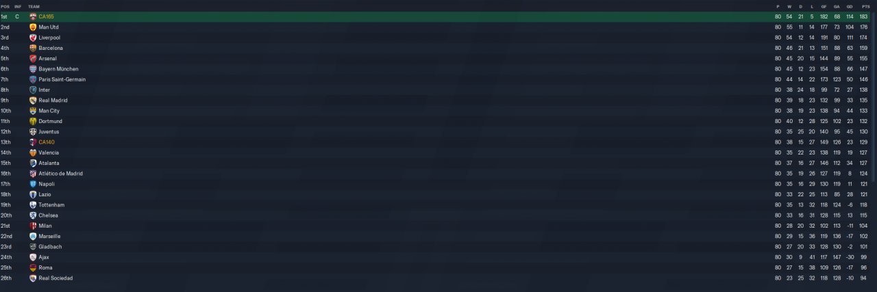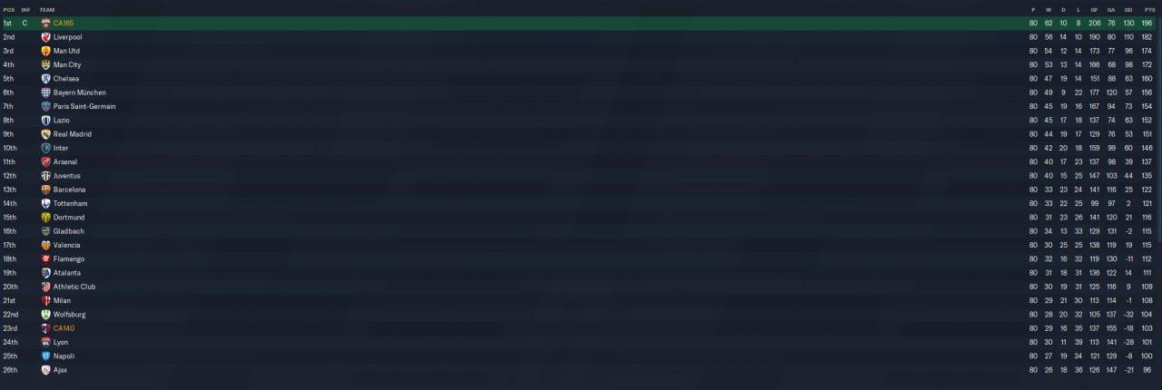 With 62 wins in a 40 team/80 game test league, this has produced the best result I've seen since the release of FM21.