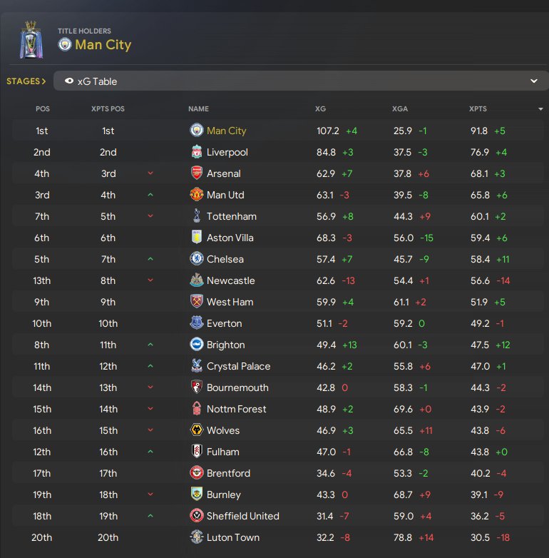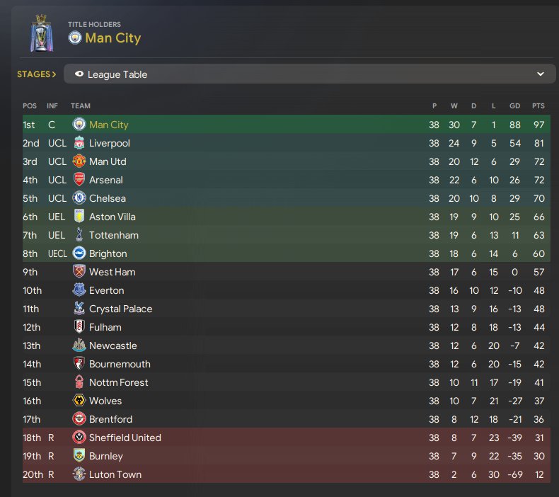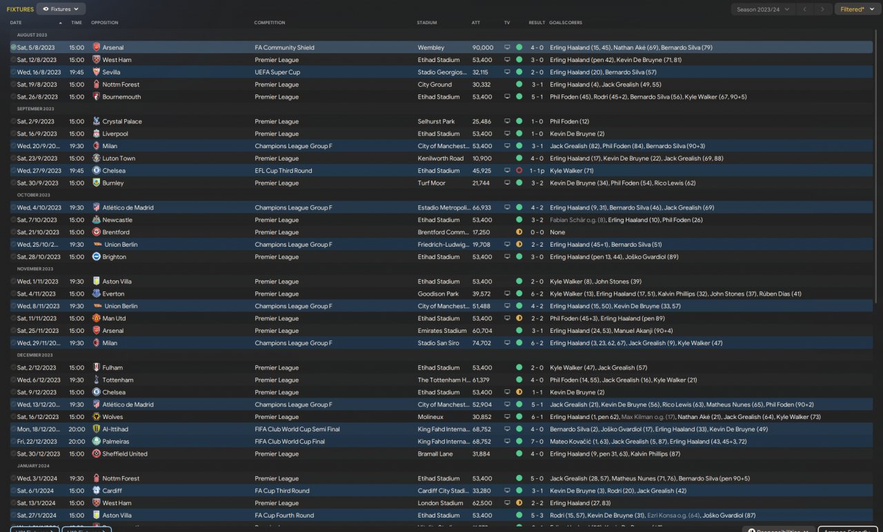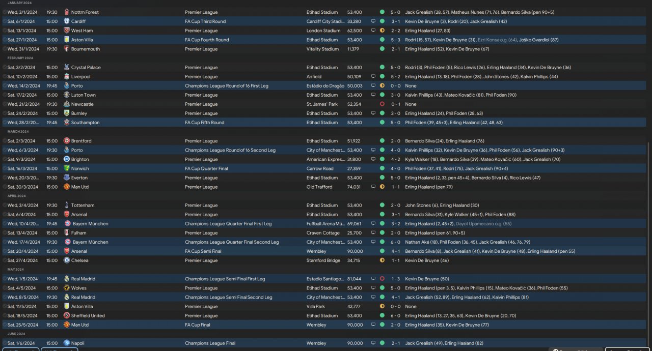 Pretty happy with the results, all but the carabao cup won. Really intriguing that it only conceded 24 goals in the league. Only 3 defeats in all comps.