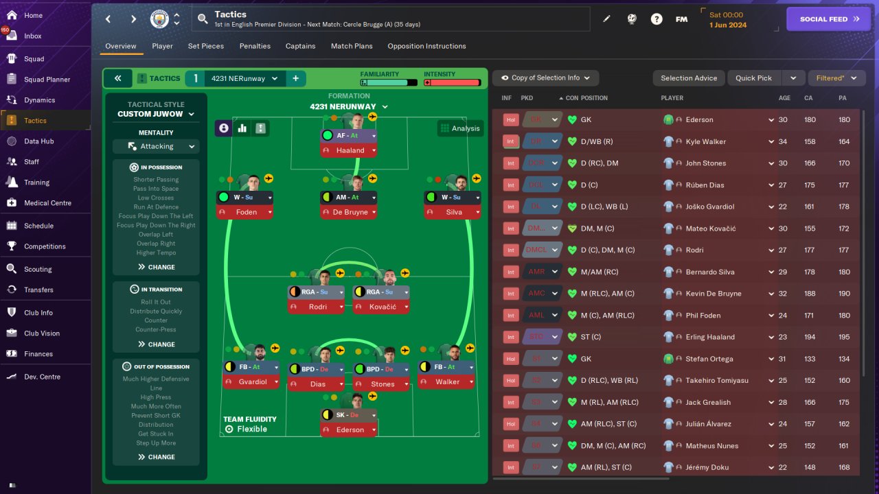 Still trying to improve this shape somehow, this version uses Wingers instead of Inside Forwards with the combination of overlaps to stretch the pitch as much as possible while still providing goal threats from everywhere.