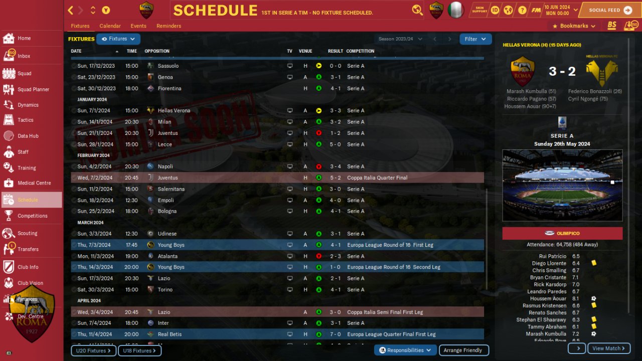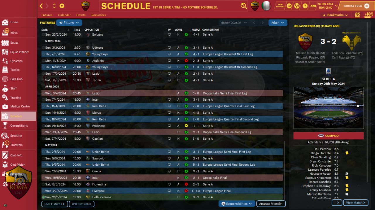 Trying something with 3 defenders. Lost de Europa League in the extra time with a red card.