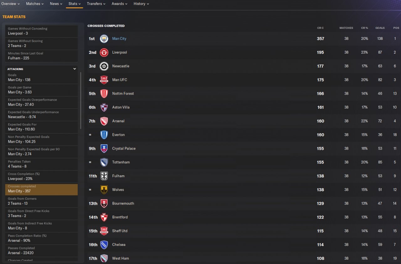 you score 1 wel score 3 kinda tactic, conceded alot i know but scores alot and the amount of crosses made is crazy , haaland with 8.33 rating in the prem , clearly not made with defence in mind lol