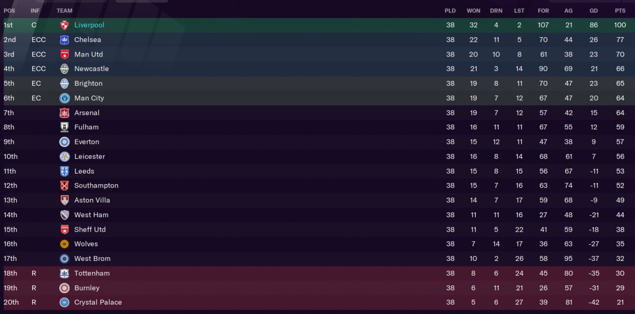 A 4312 positive tactic tested on Liverpool (100 points) in season 20/21