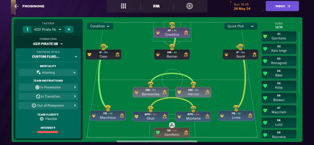 From my last tactic 4231 Pirate II, removing 'Roam From Position' and adding Overlaps