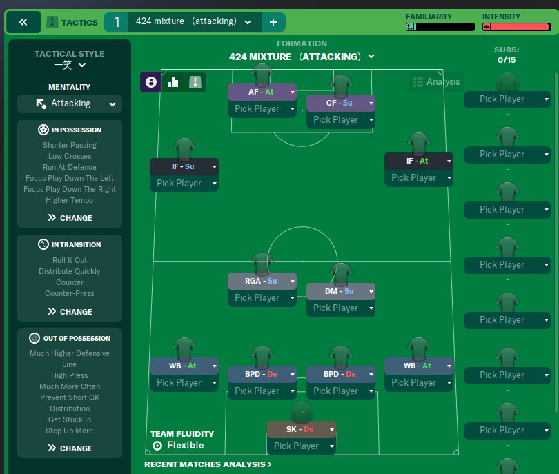 Re-examine the effect of the defensive midfield combination of "RGA+DMS", but I encountered a problem, I was at a loss in terms of the choice of mentality and whether to choose "Pass into space". I always felt that the 424 formation had more ambiguous options.Expect the test results to give me the right answer, at least about this tactic.