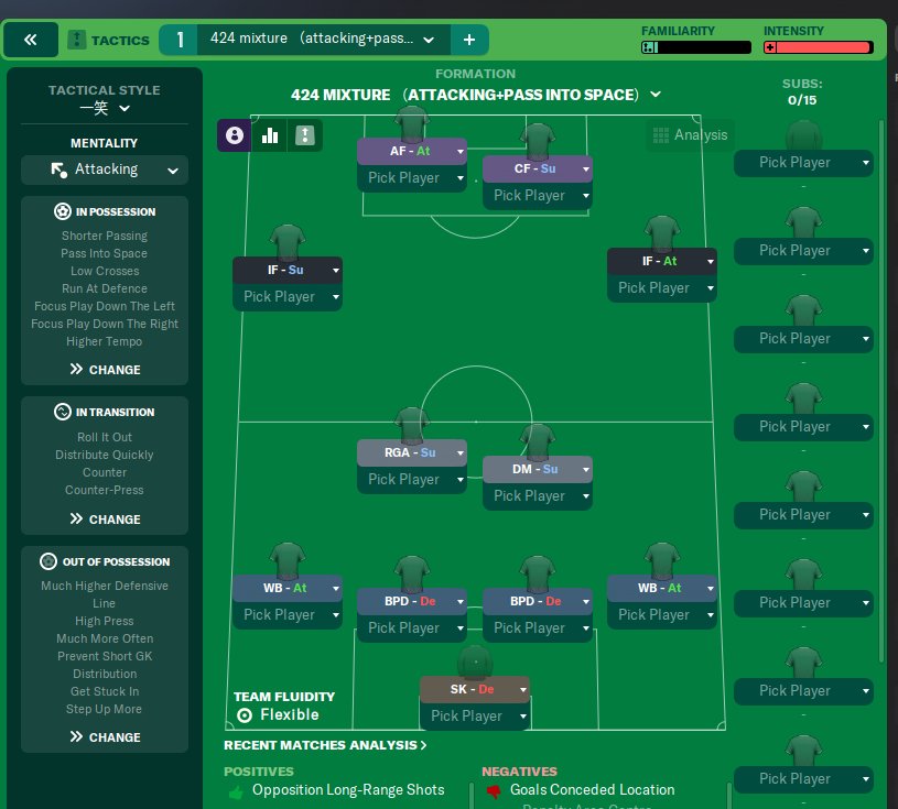 Re-examine the effect of the defensive midfield combination of "RGA+DMS", but I encountered a problem, I was at a loss in terms of the choice of mentality and whether to choose "Pass into space". I always felt that the 424 formation had more ambiguous options.Expect the test results to give me the right answer, at least about this tactic.