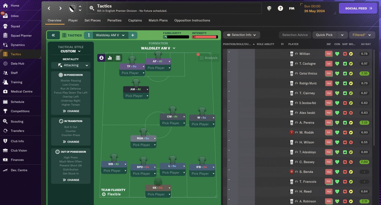 Changed PIs, lowered defensive line, removed 'pass into space', removed 'focus play down the right', removed 'distribute quickly', and changed mentality to Attacking.