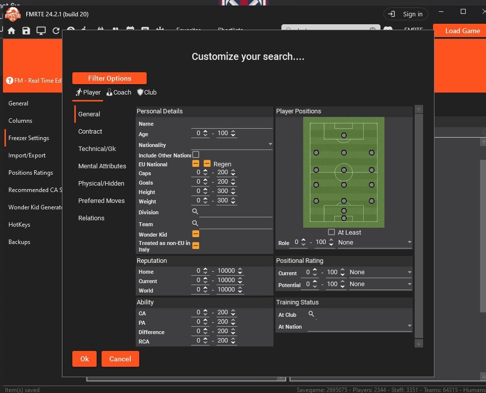 Chris said: Can we do the same with in-game FM editor? Also, if you freeze atributtes, what's happening with IA teams, do they freeze too? Ty for your time, as always, this tool is great Expand With In-Game Editor you can only freeze player attributes (not conditions, morale etc.) - one by one - and there are 255 players. I wouldn't recommend it. You can use the free version of FMRTE if budget is an issue.