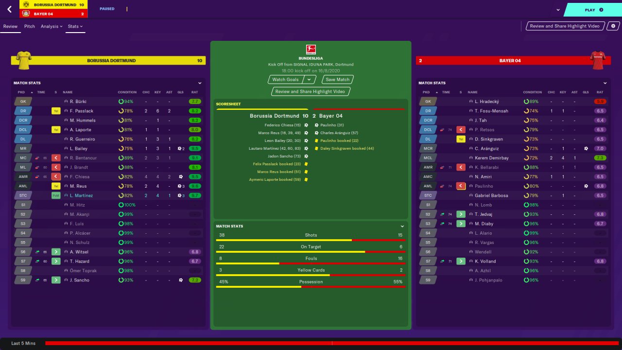 Won the league 1st season with Dortmund on holiday. Made some tweaks from previous post and had some impressive attacking results as shown.