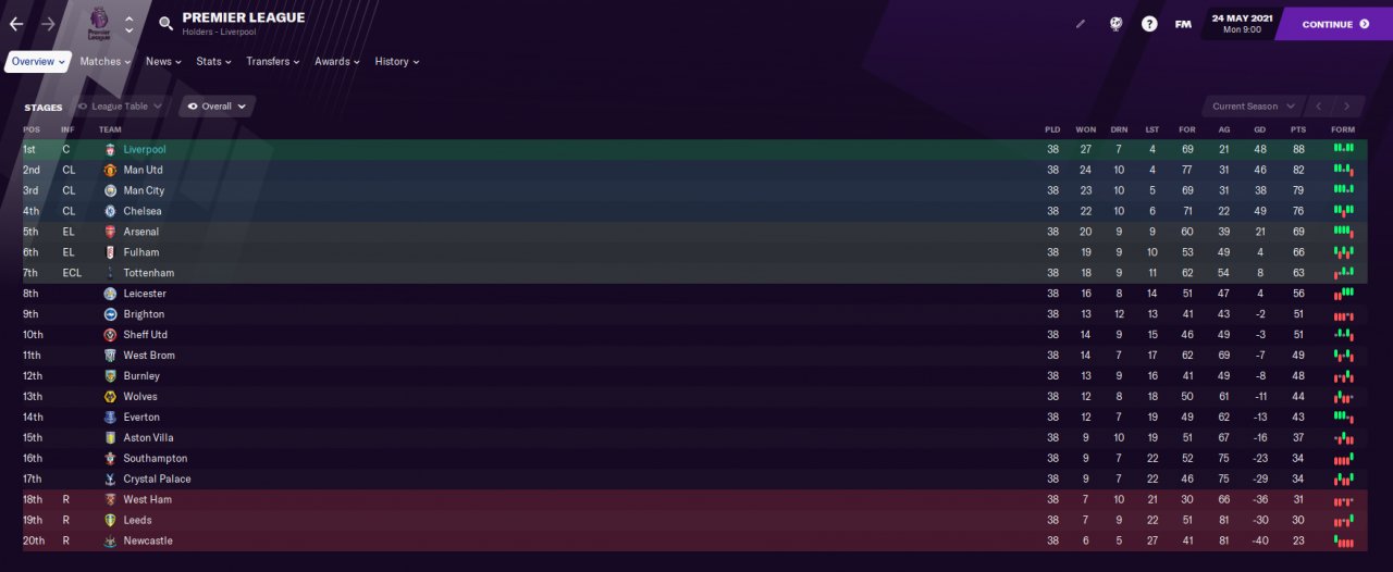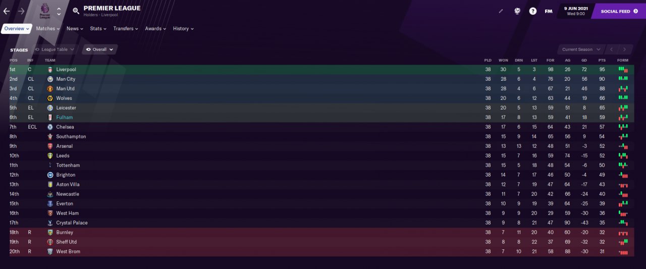 Fulham - 6th in Premier League: 59 pts. Top goalscorer had 8 finishing!