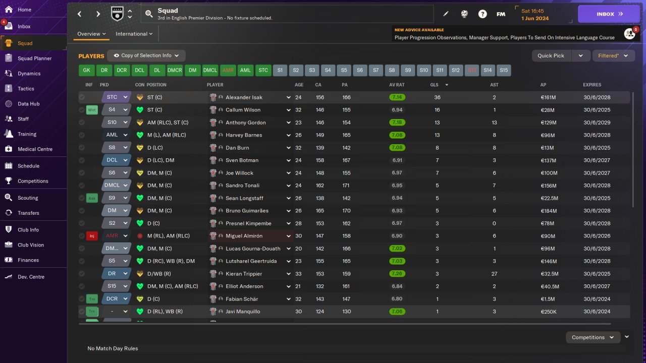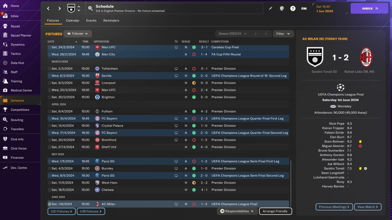 Decent result with Newcastle while winning the Carabao Cup and going to the CL final.