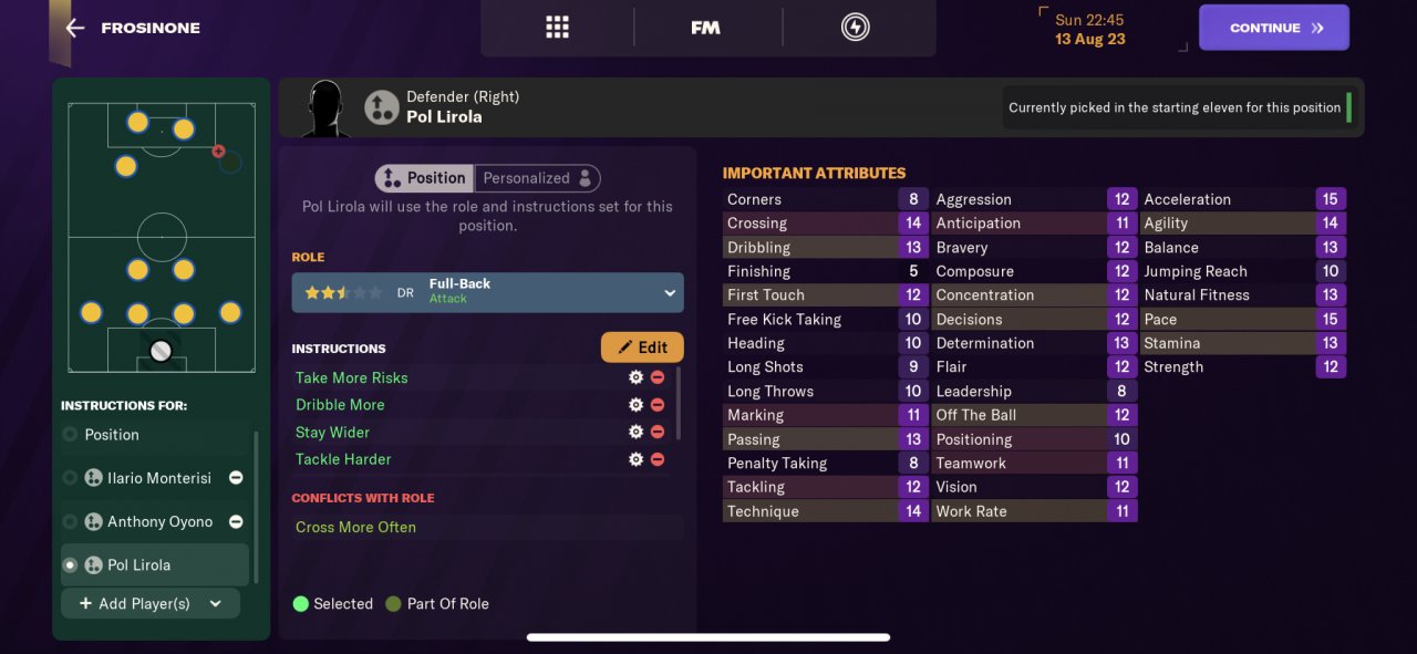 So sorry, i'll try to be more clear: in this version i wanted to try fullback instead of wingbacks to be more solid, then i created other versions (still in testing queue) with PI on FBs more similar to 4231 Pirate ones, so curious if they will have some effects or not