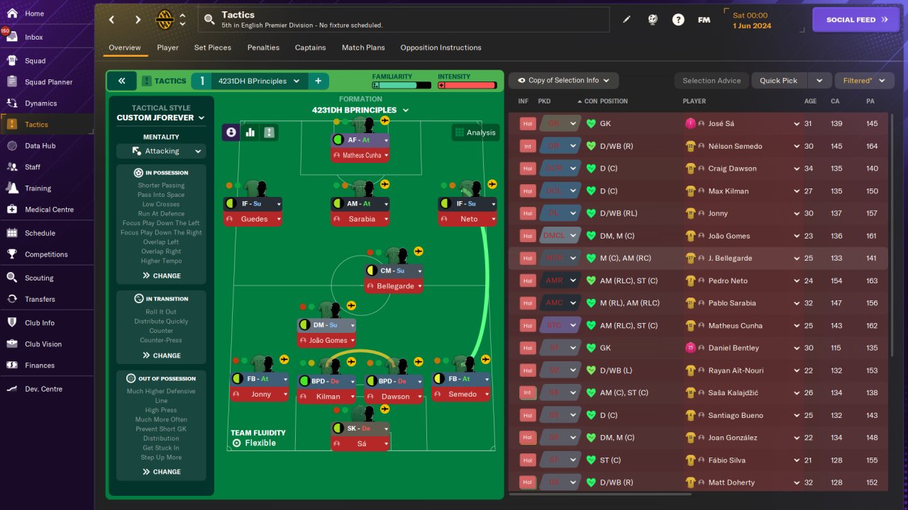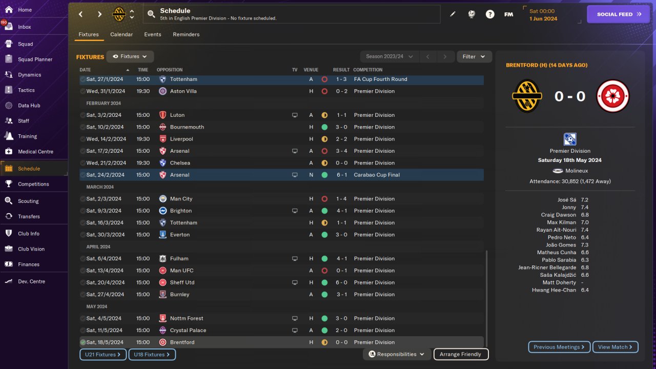Managed to take down the Carabao cup with Wolves plus a really decent result in the league too with a pretty balanced GD. This version uses one DM and one CM as opposed to the usual meta tactics.