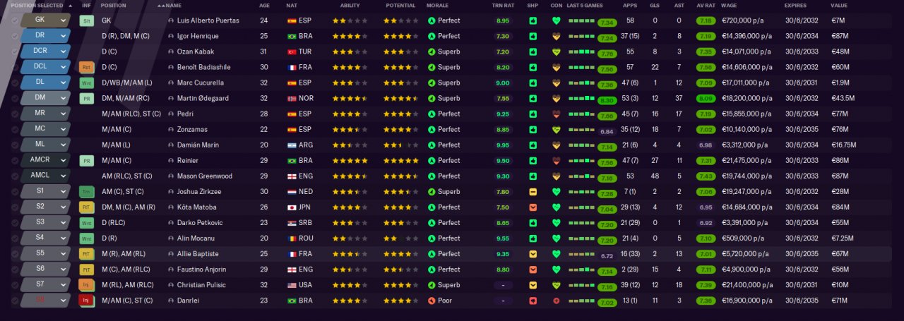 ZaZ said: Does Odegaard play as DM in your team? I remember @ta2199 said that position was getting low scores on his save, but the fact that your DM is you best performer shows that it's probably not because of the tactic, but because of the player itself (or the partners). For references, I'll link his attributes below: https://fminside.net/players/53095137-martin-degaard