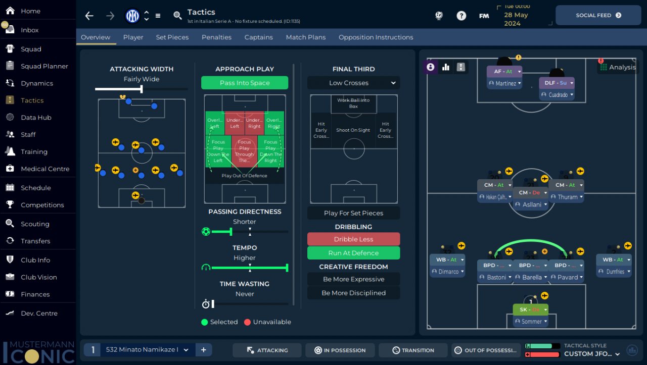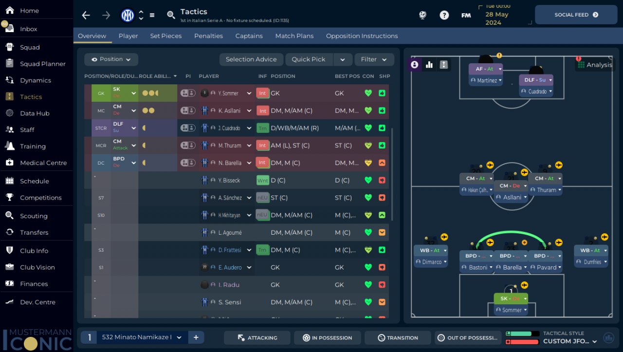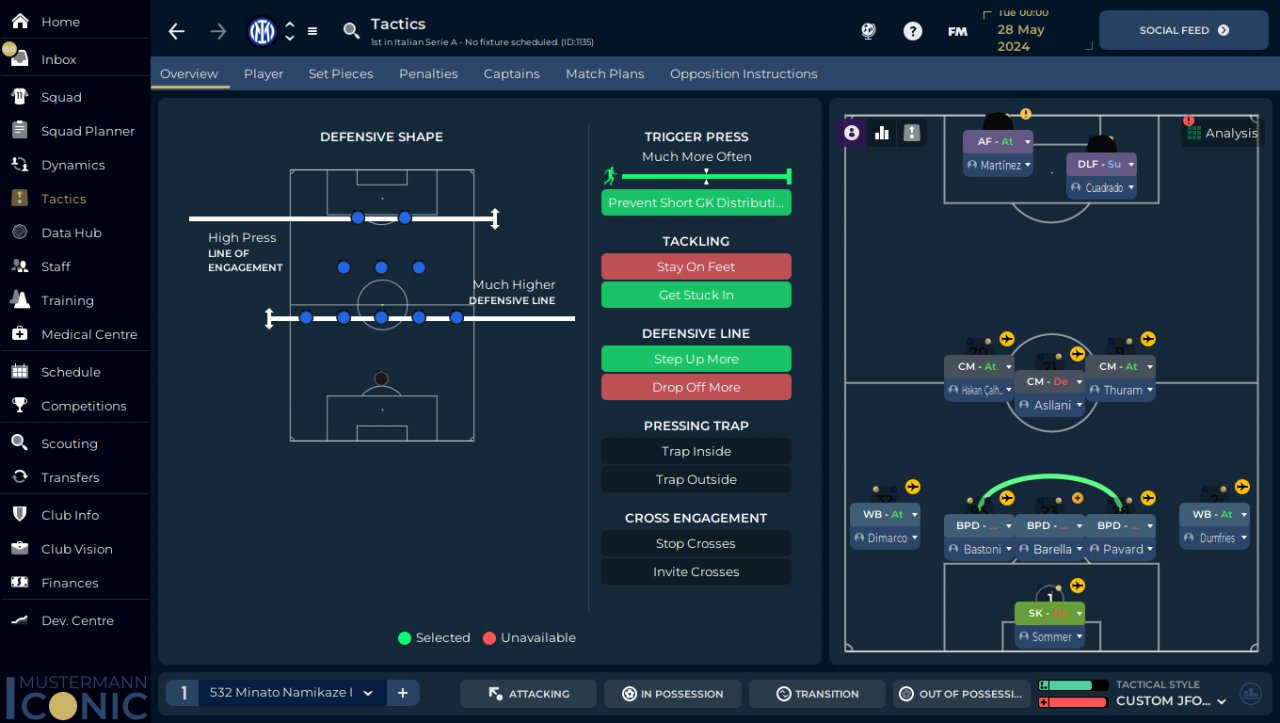 Trying this shape for fun will score very bad but i think is cool, in FM what we see on the screen is the defensive shape and this is how most teams play who play 352 maybe just moving the CM in DM but thats it.