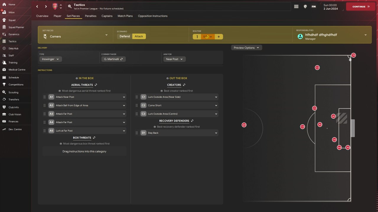 If you only want my corners they look like this; The main idea is to put many players away from the near post as distraction, and the player attacking the near post to score more. The player attacking ball from edge of the area will also score some headers. And don't worry, you'll never get countered on even with 1 only player in defence.