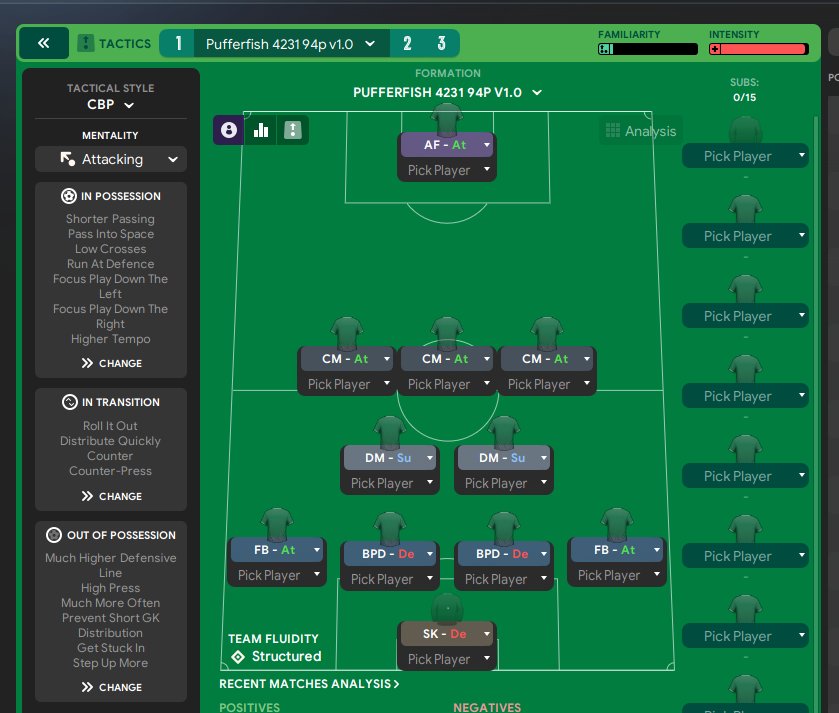 a 4231 with 3 CMs on attack duty, double pivot in DM is still very OP so stuck with that.