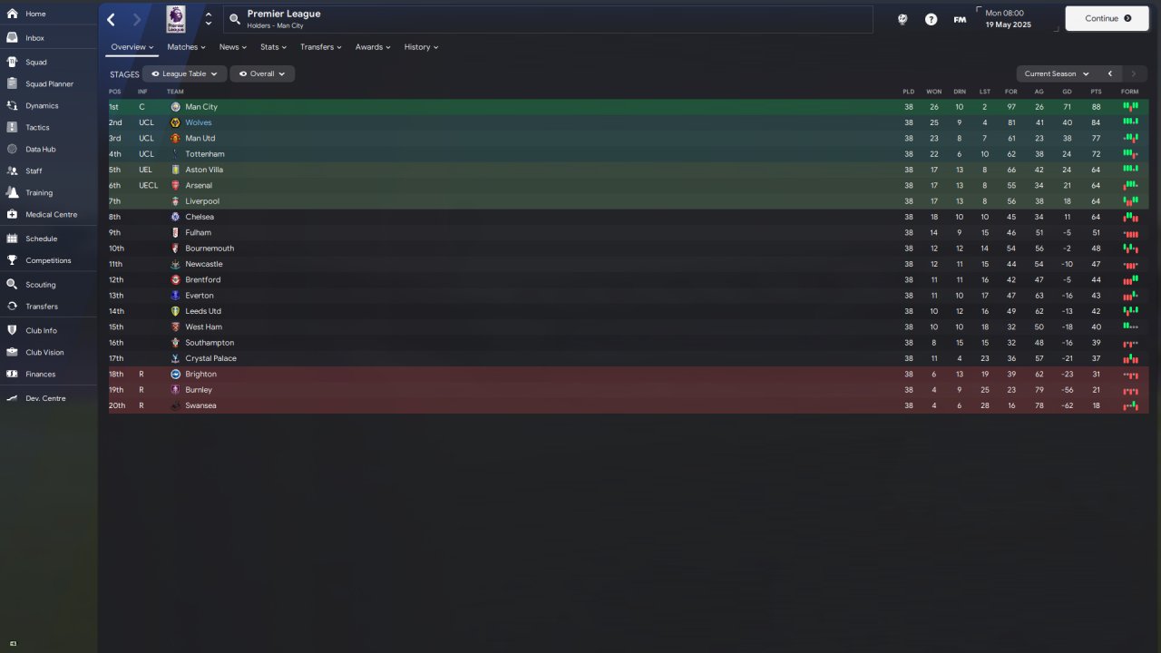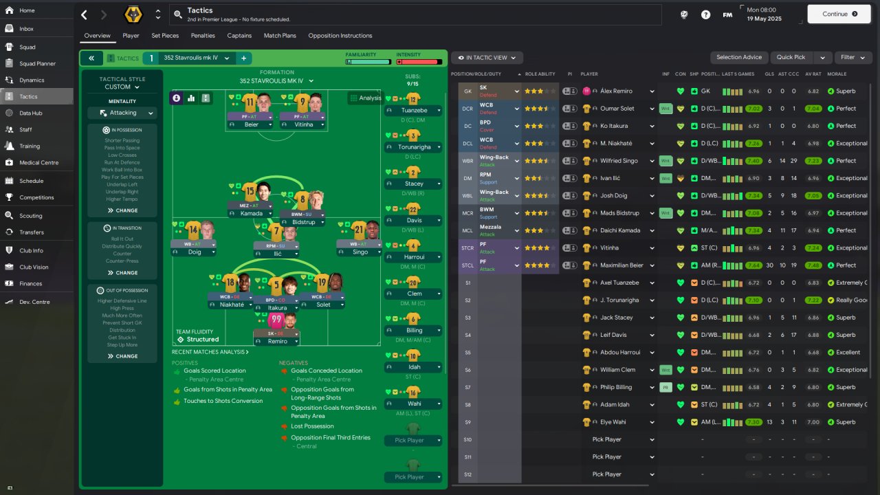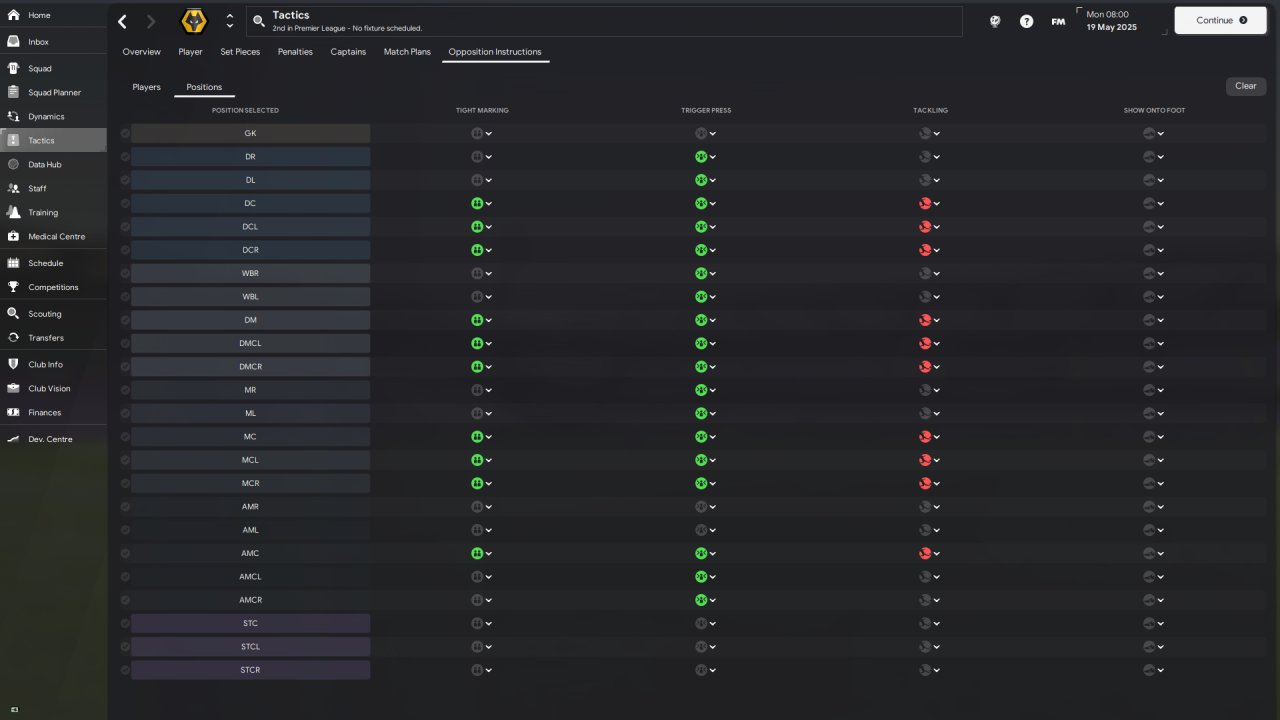 A representation of the 352 shape used by Inter in real life. 2nd season with Wolves finished second. Opposition Instructions are essential for this to work