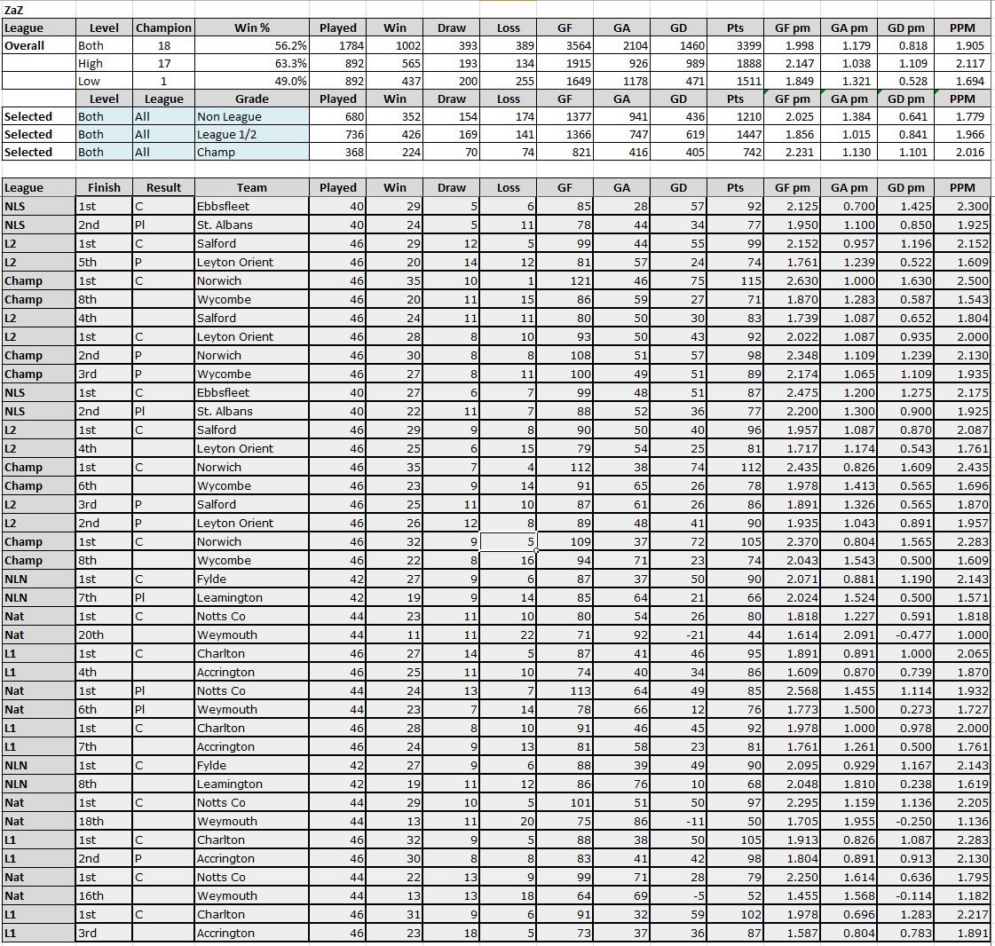 @ZaZ All the numbers are average points per game. The top ranked sides and low ranked sides were determined using FM Scout when the game was first saved. So low ranked sides were expected to be relegated and top ranked sides to be promoted. Non League sides are Vanarama leagues. Hope that helps