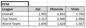 Just an observation, but you cant average the numbers from that table because they played different numbers of games in each league. The real average points per game are in the summary and details tables for each tactic.