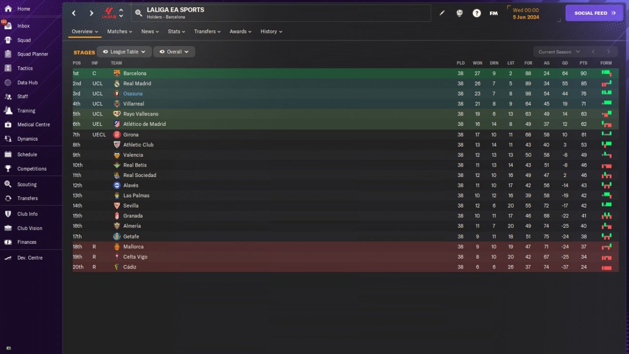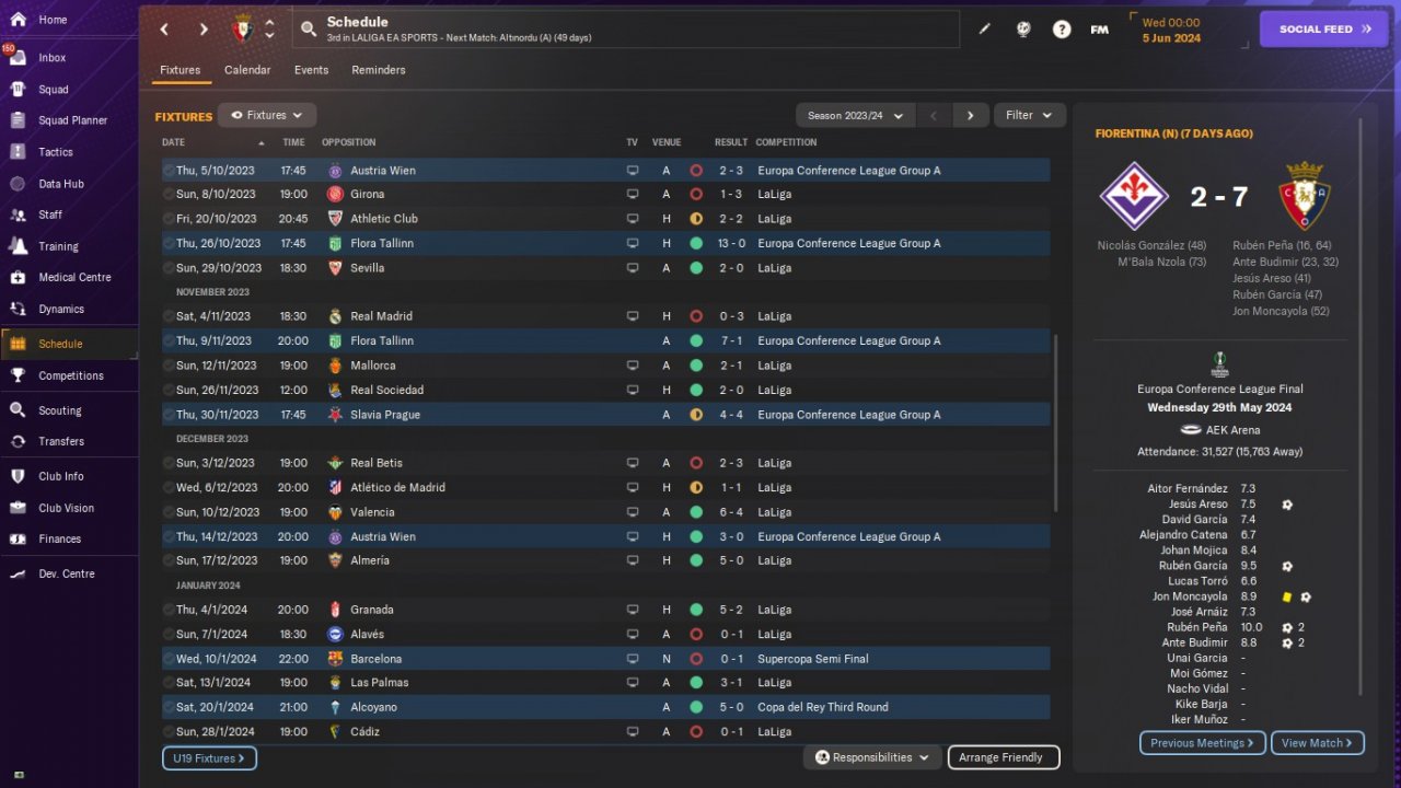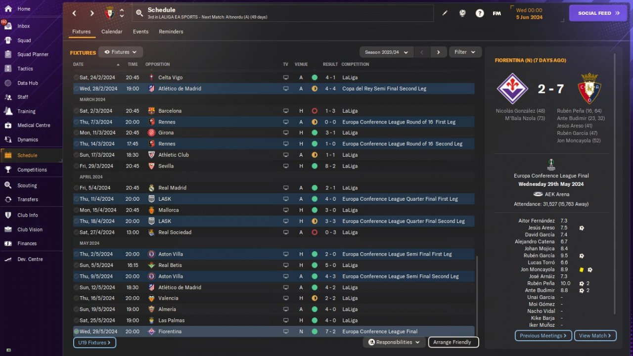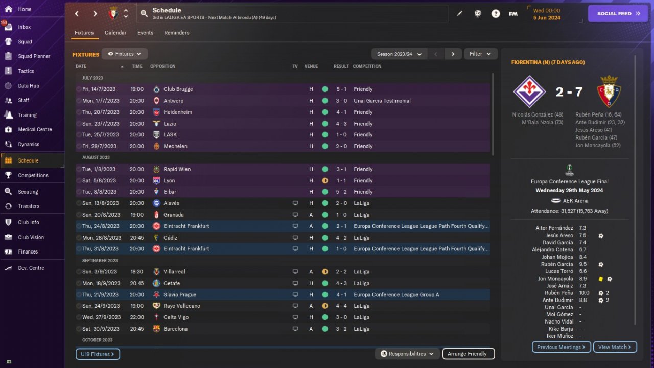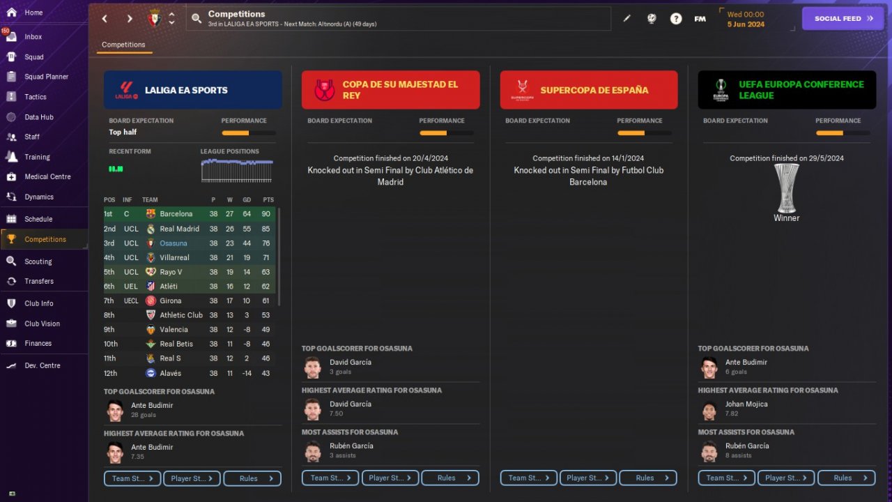 UPDATE: Osasuna test results. Predicted 10th. Won The UEFA Europa Conference League.