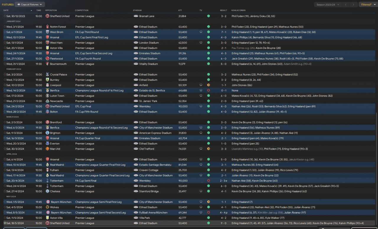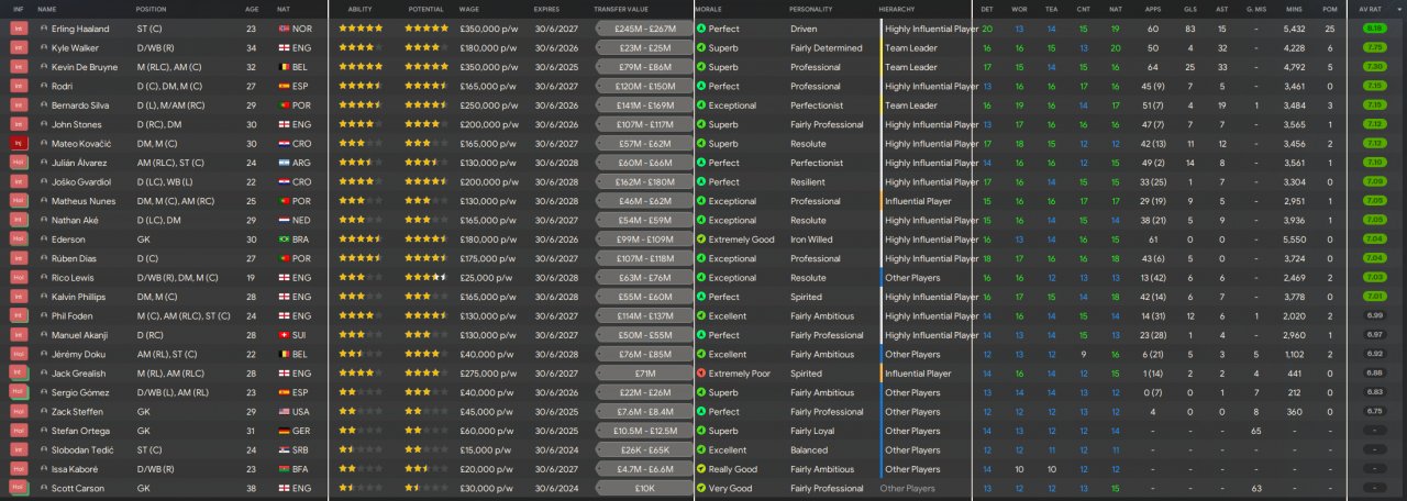 5 trophy wins incl PL and club world cup, Haaland scored 83 from PF support role