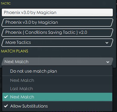 ZaZ said: I have never used match plans because they seem to only work for the next match. Is there a way to set it automatically for all matches?