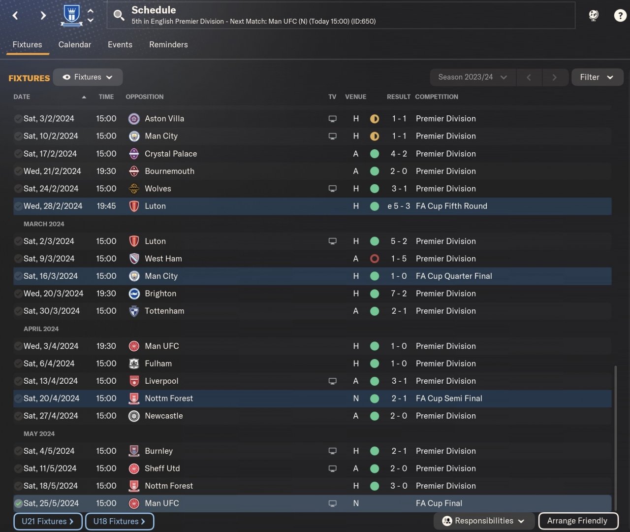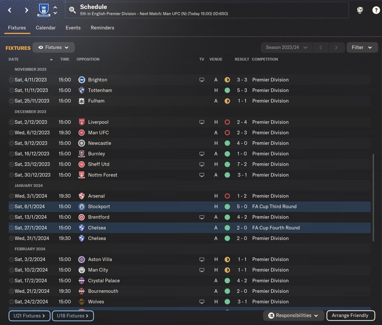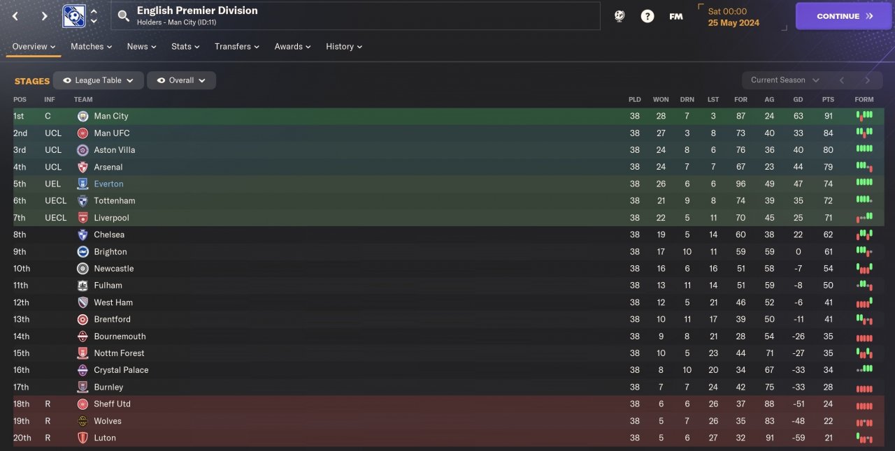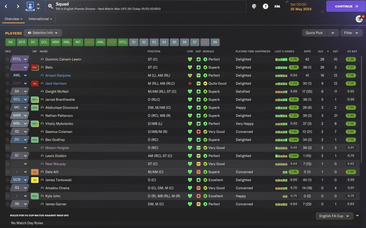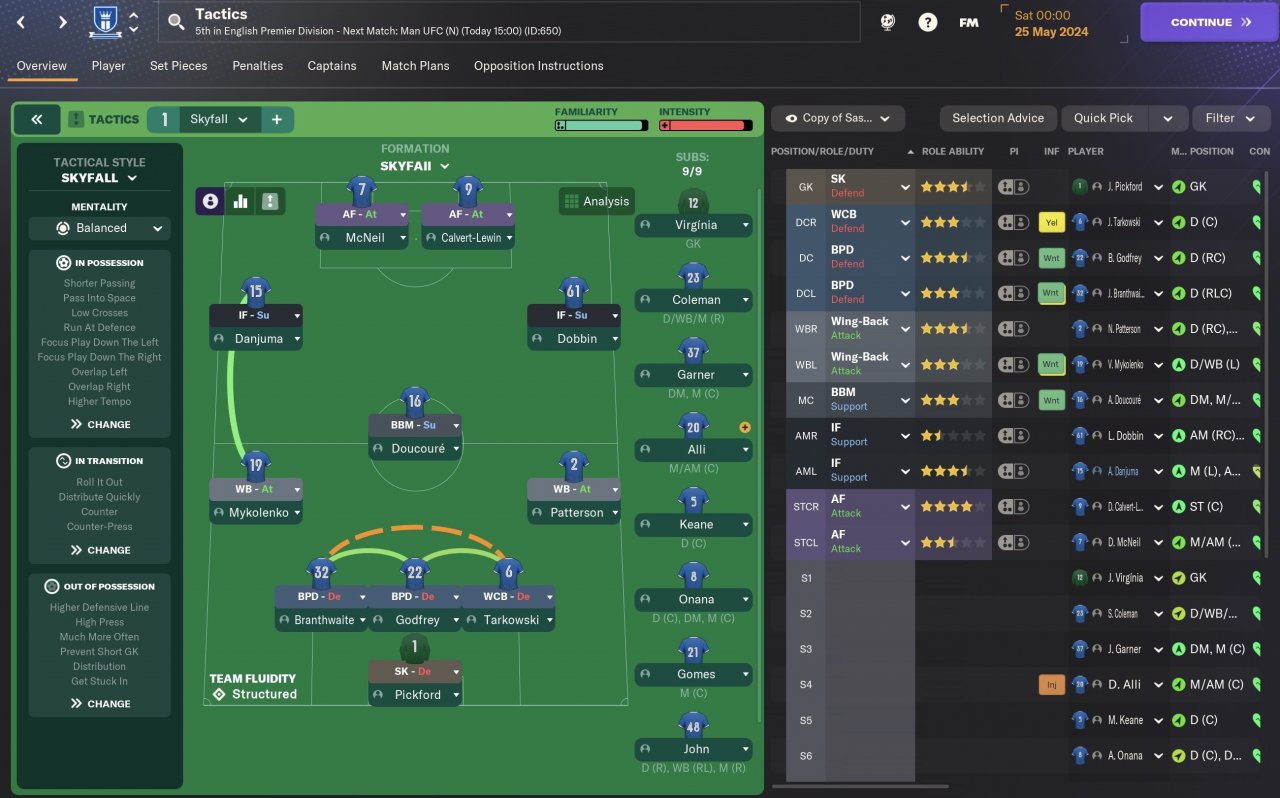 Tested it with Everton, went on holiday whole season. No set piece instructions. Didn't play FA Cup Final.