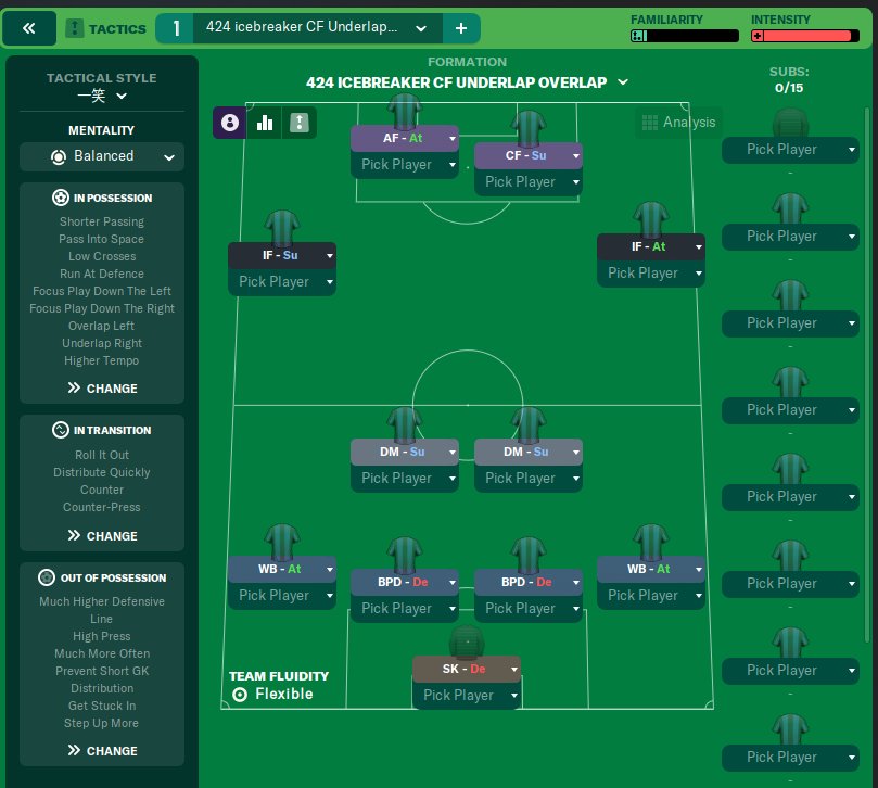 Hi,dzek. Yes, I tested it. I uploaded the setting of Balance mentality +Underlaps before, scoring 62. I think it would be better to adopt the setting of attacking+overlaps. My summary of the current engine is that two or three ST's are usually better for a balanced mindset, though this combination like you said may be one of the exceptions.
