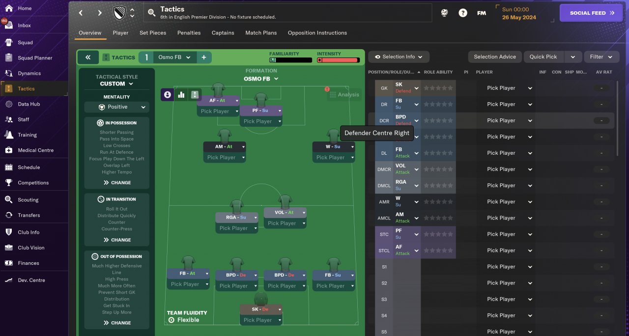- FB with 'tackle harder', 'get further forward', 'sit narrower' and 'take more risks' PIs added