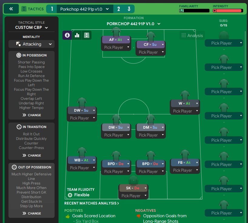 Wing back on the left side accompanied by a defensive winger(as the wing back has a PI of cross from byline I wanted a bit more cover for when he bombs forward hence the defensive winger)