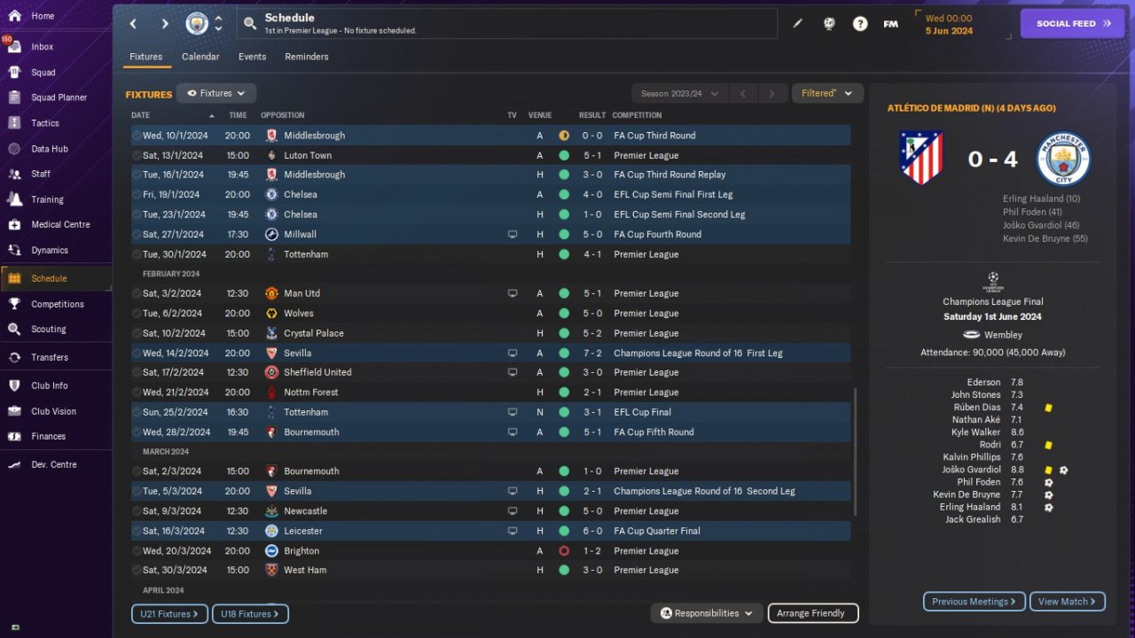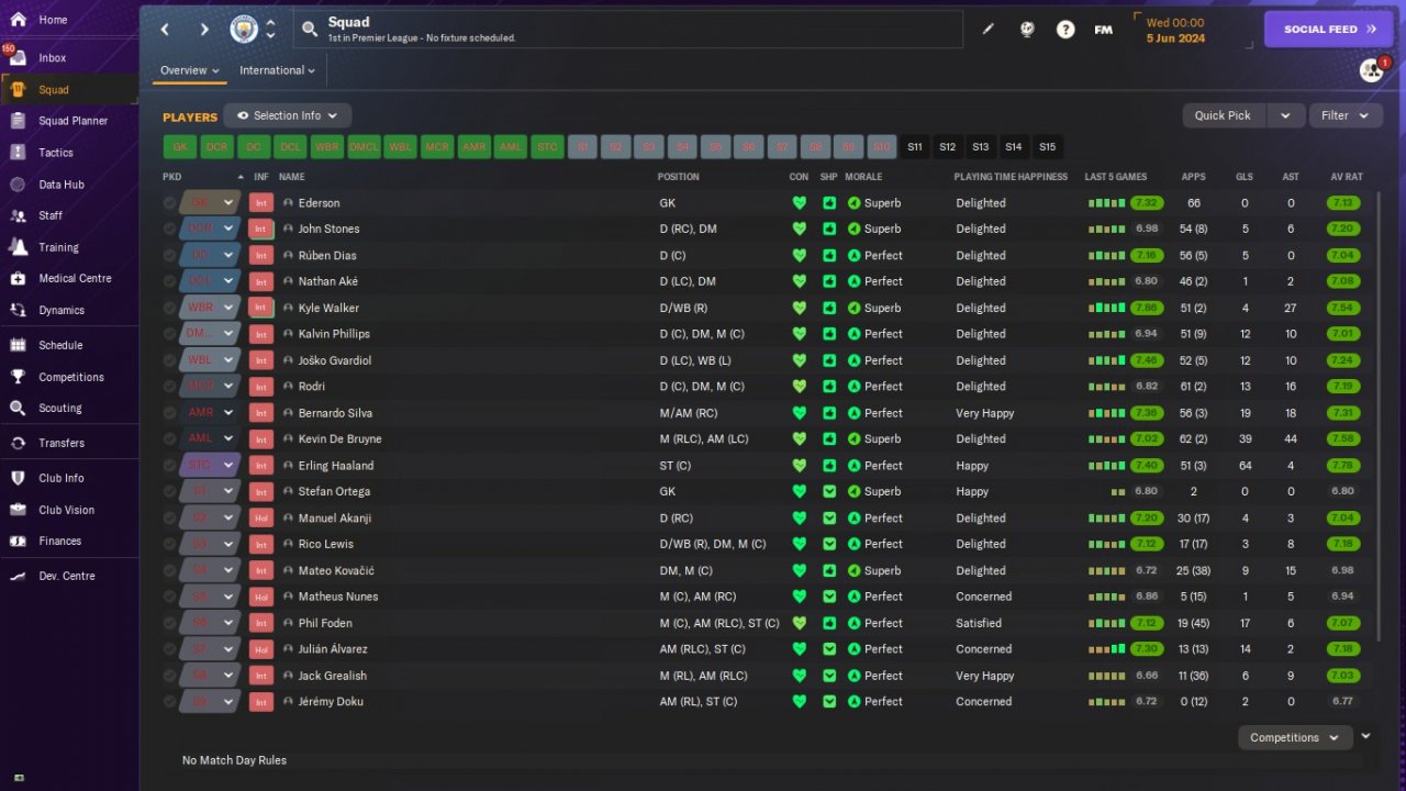 We won all competitions that we participate. Except GKs, all players scored at least one goal. Except Dias, Doku and GKs, all players made at least one assist.