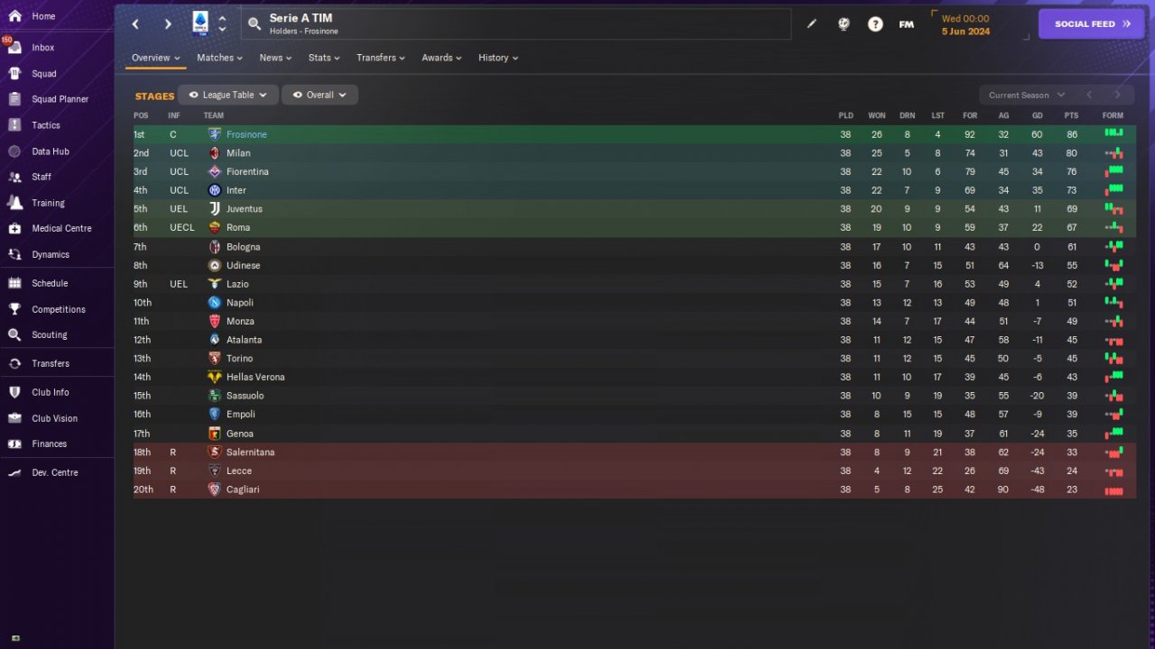 UPDATE: Frosinone test results. Predicted 20th. Won the league. Walid Cheddira is shared top goal scorer with Giroud (23 goals)