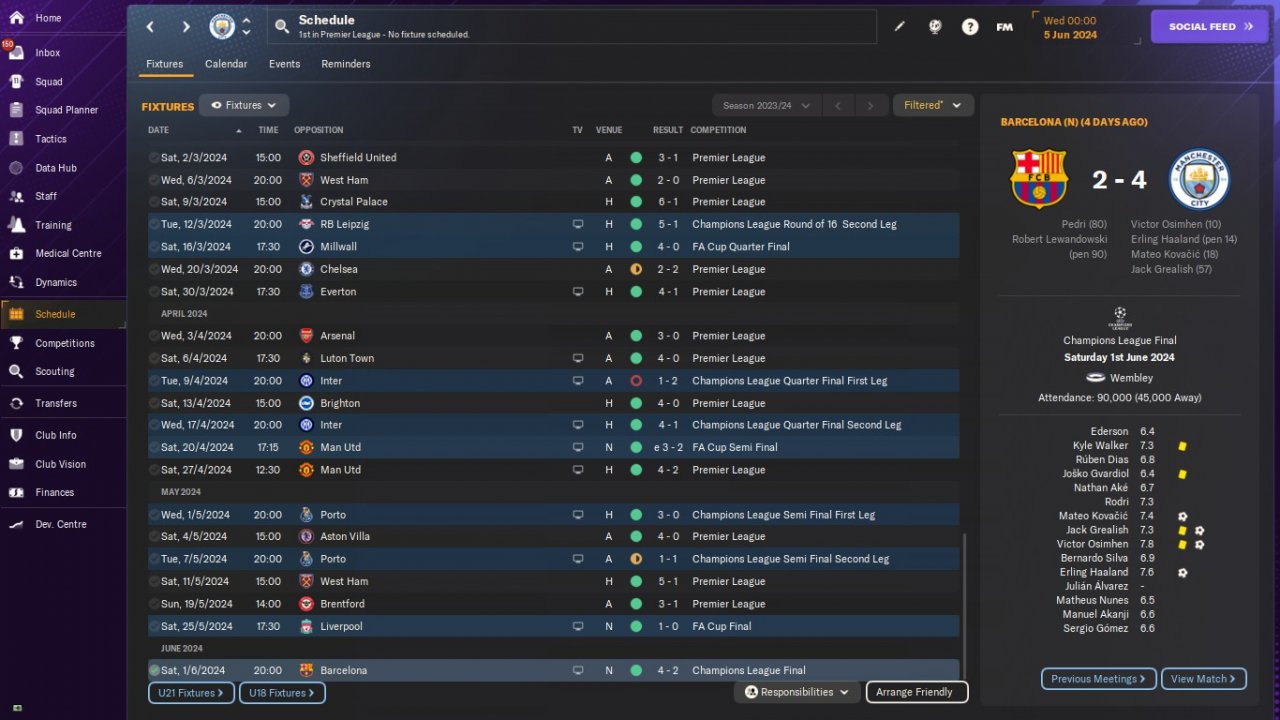 We won all competitions. Invincible league season. Only lost one game (Against Inter in UEFA Champions League Quarter Final First Leg)