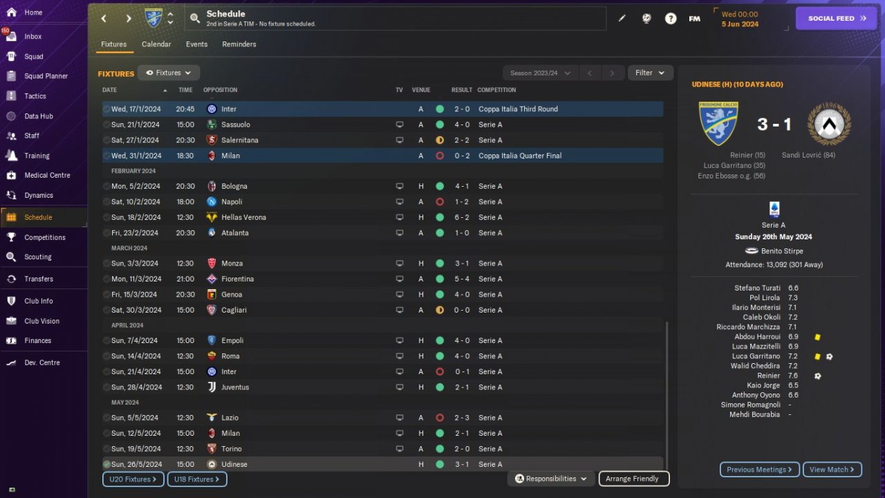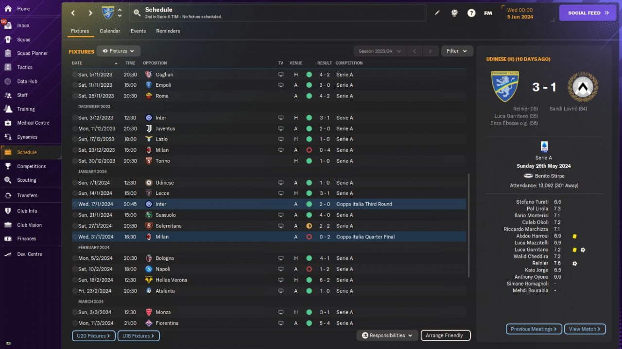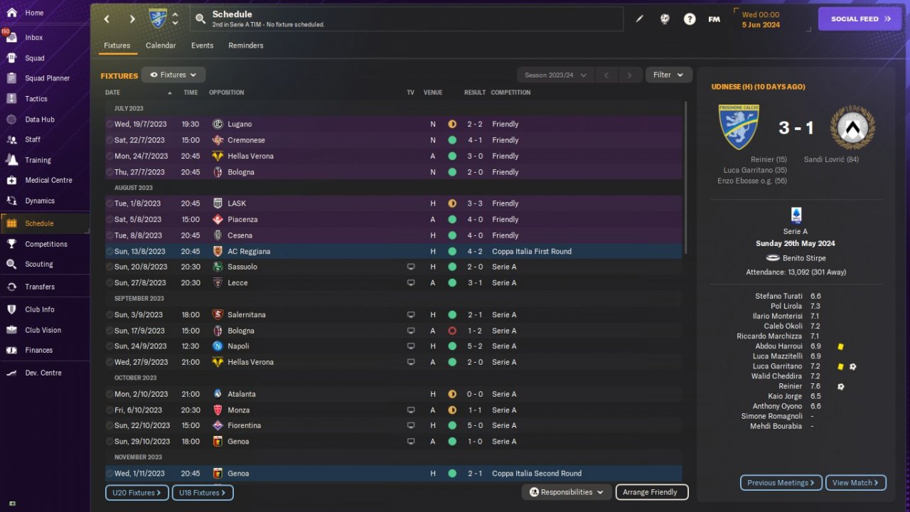 I also tested it with Frosinone and Osasuna. You can check their results in comments.