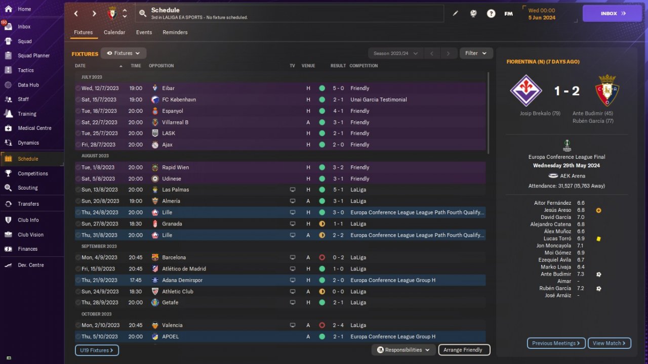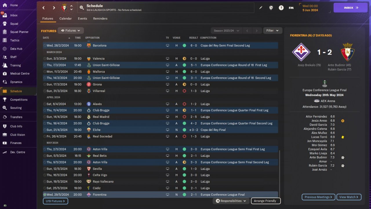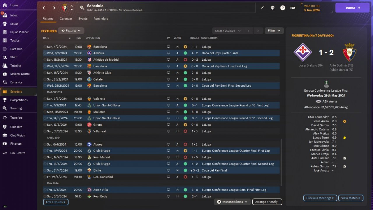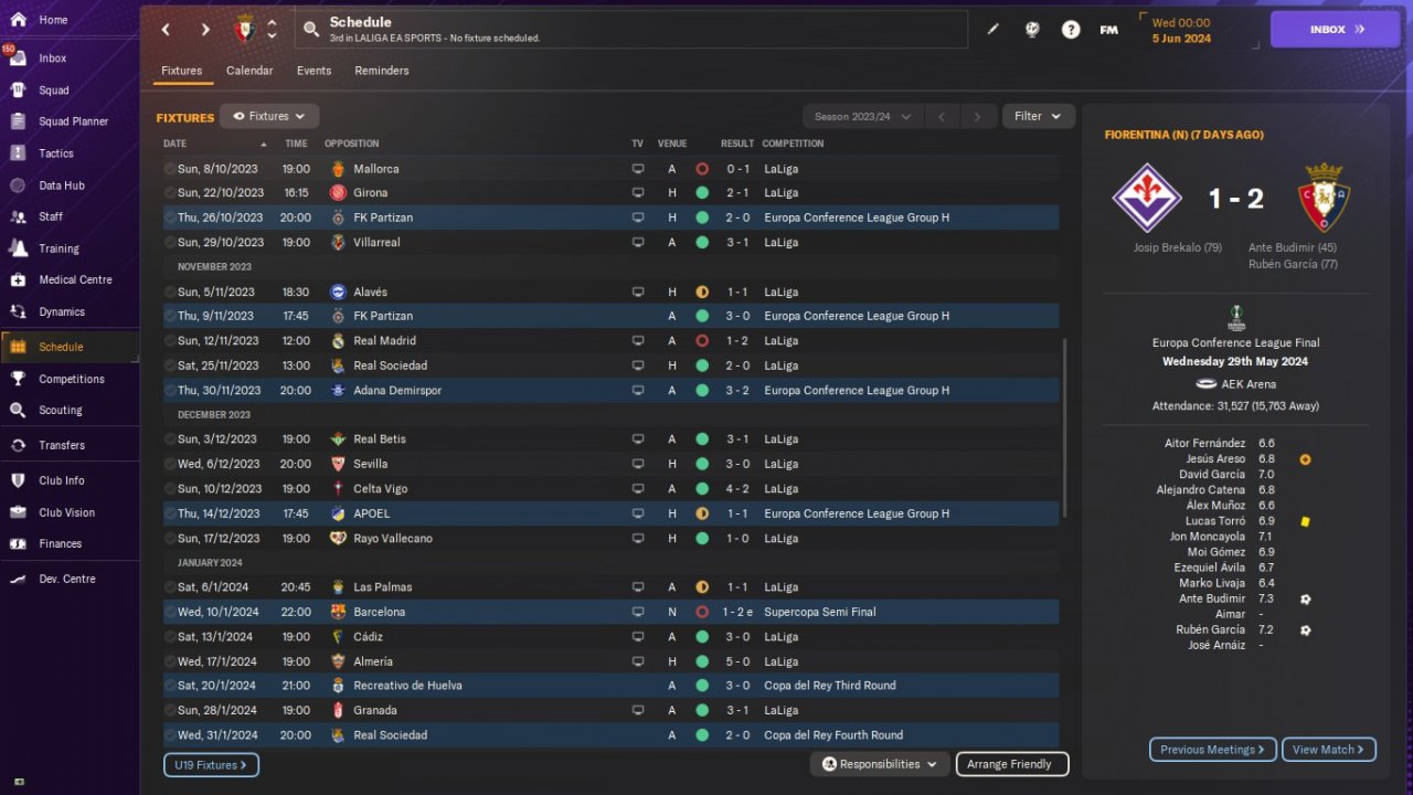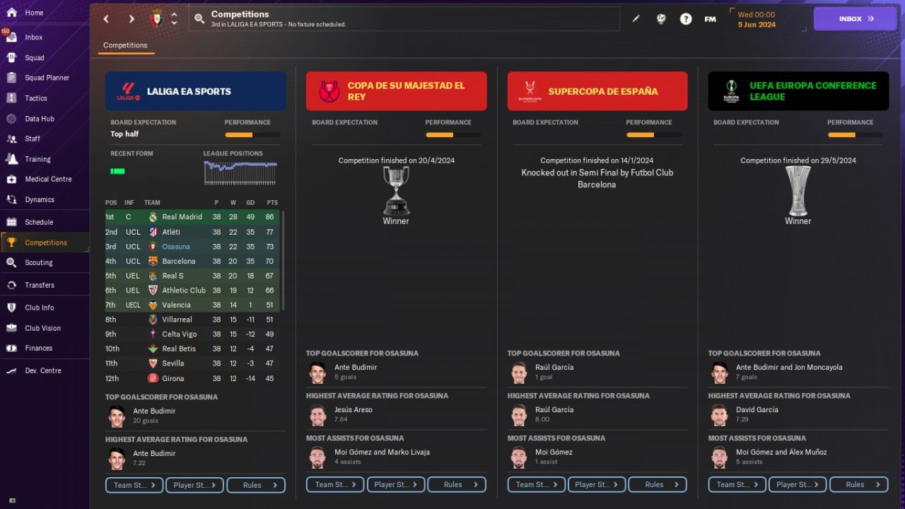UPDATE: Osasuna test results. Predicted 11th. Won Copa de Su Majestad el Rey and UEFA Europa Conference League.